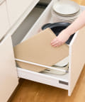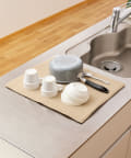 ●吸水マットを広げ、洗い終わった食器などをマットの上に置き、水分を吸収させてください。
