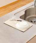 ●吸水マットを広げ、洗い終わった食器などをマットの上に置き、水分を吸収させてください。