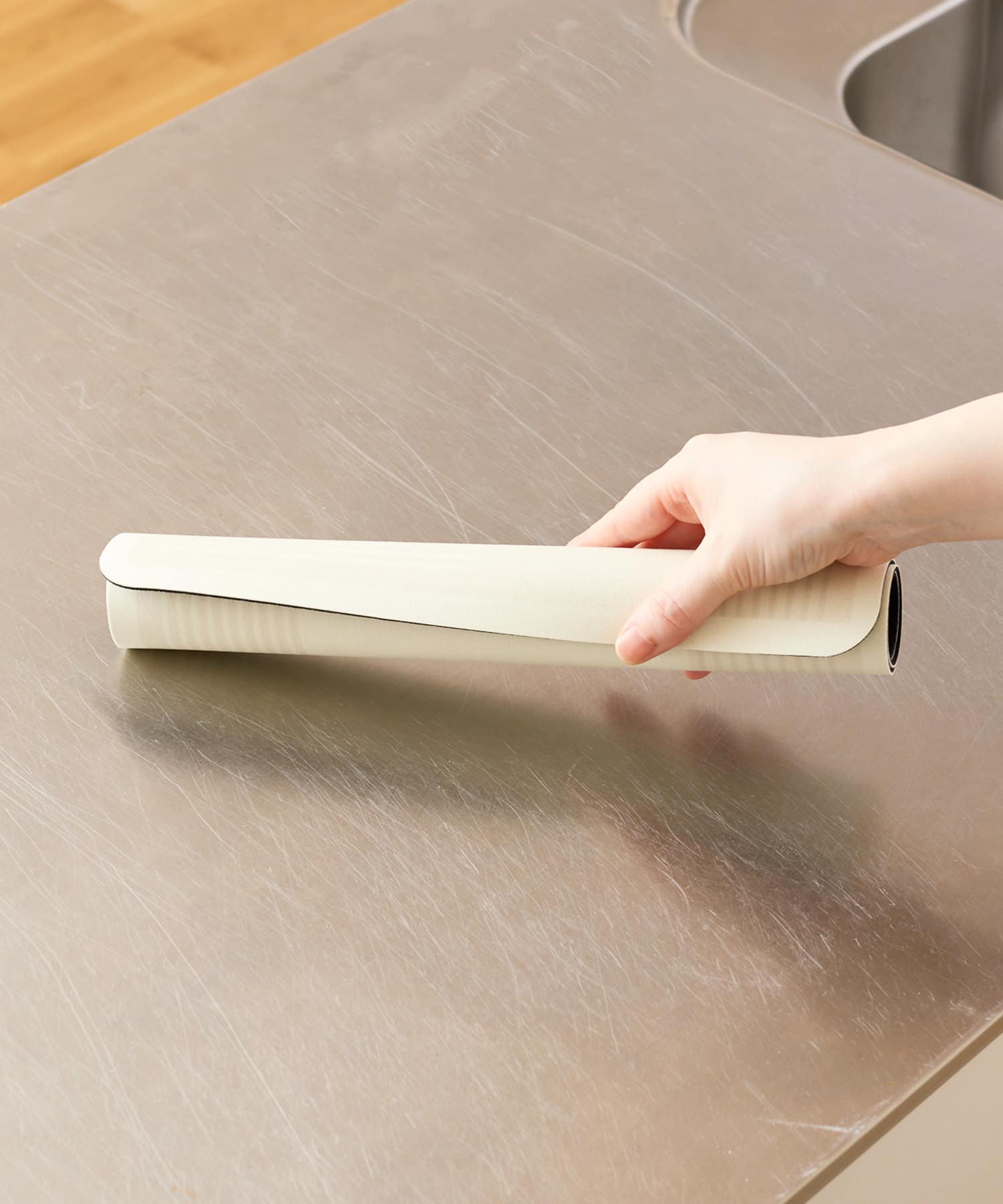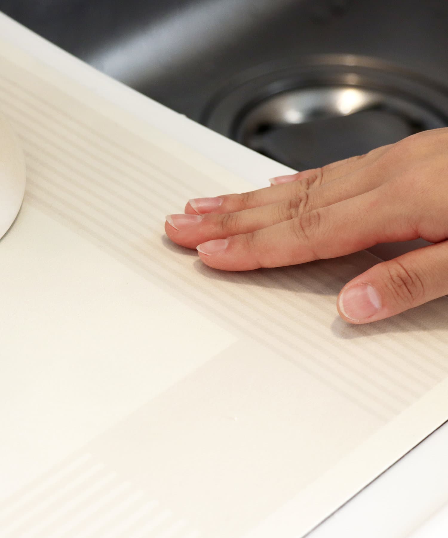●吸水マットを広げ、洗い終わった食器などをマットの上に置き、水分を吸収させてください。