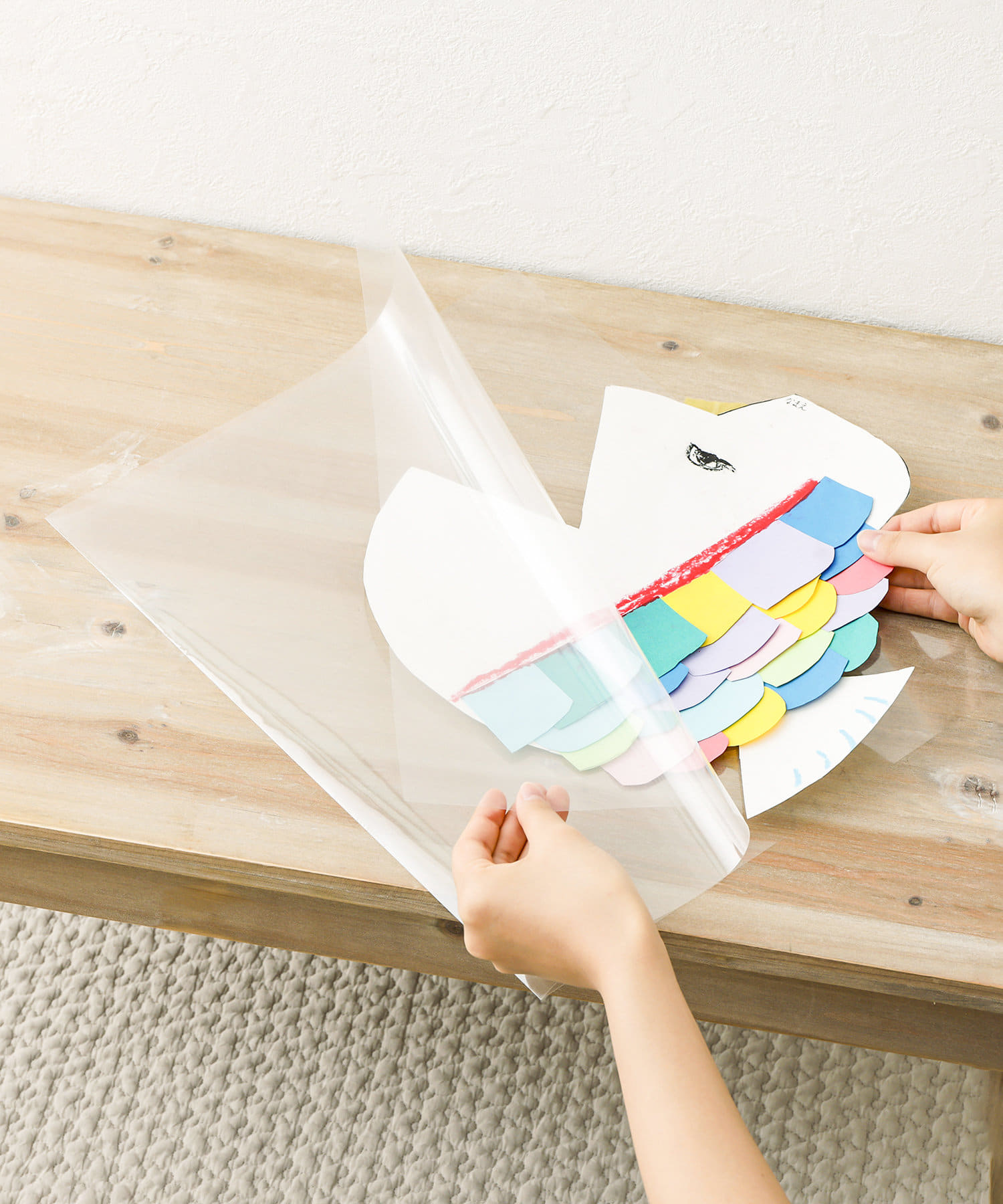 フィルムみたいな薄いもので作品をサンドするのですが、もっと分厚いと良いと思いました。