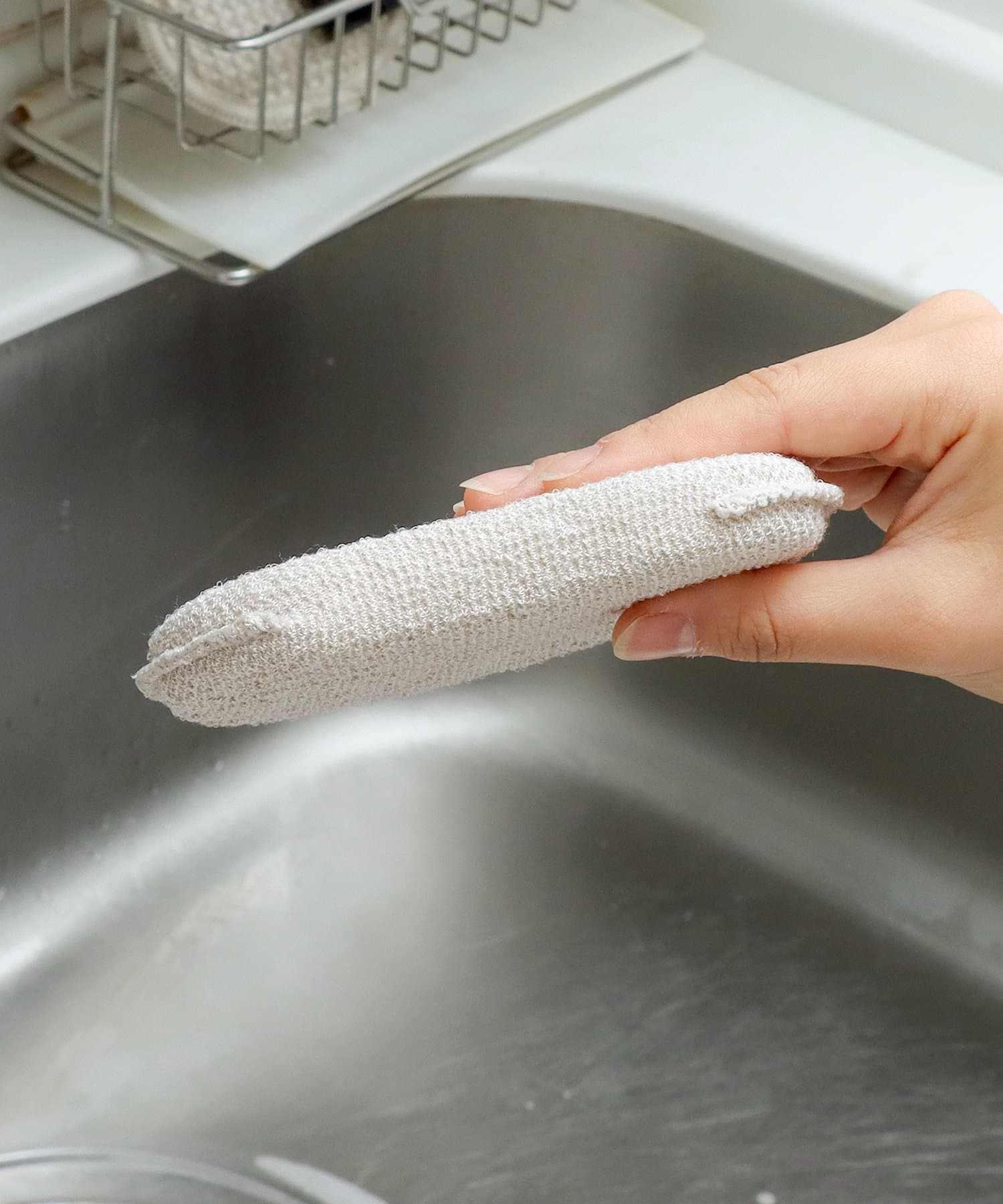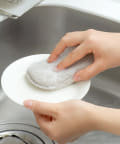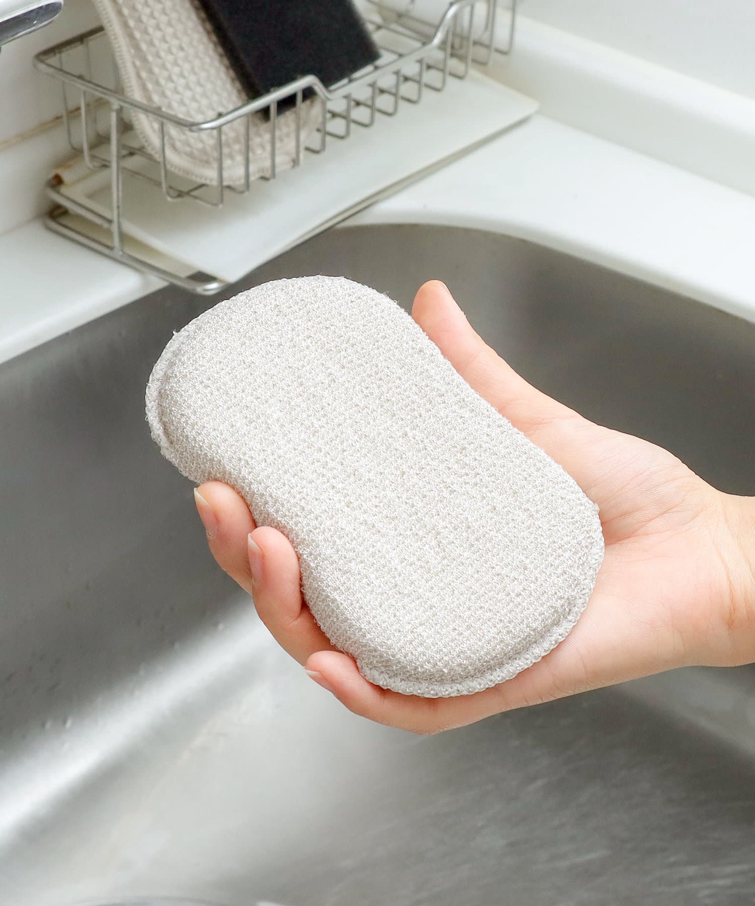 ※この製品に使われているレーヨンは、天然由来の竹を原料に作られています。硬すぎず、柔らかすぎない、もっちりとした感触がちょうど良いバランスのスポンジは、女性の手に握り心地良いサイズです。お皿・グラスはもちろん、鍋・フライパンなどにご使用できます。べたつきのない食器を洗う時に使用する際は洗剤は必要ありません。