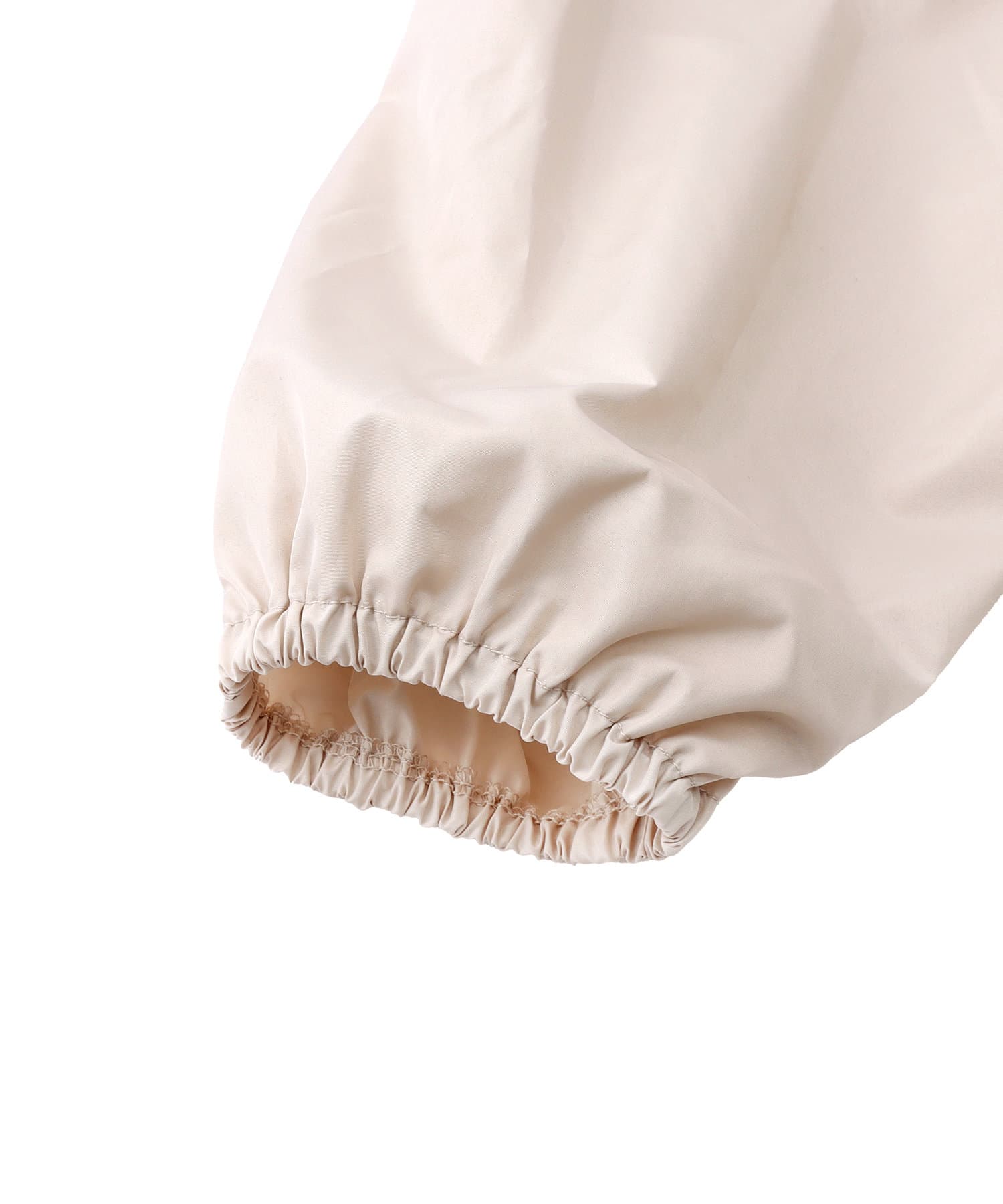 ●裾と背面にゴム入りで伸縮性があり、体にフィットしてくれるので中の服が汚れにくい◎