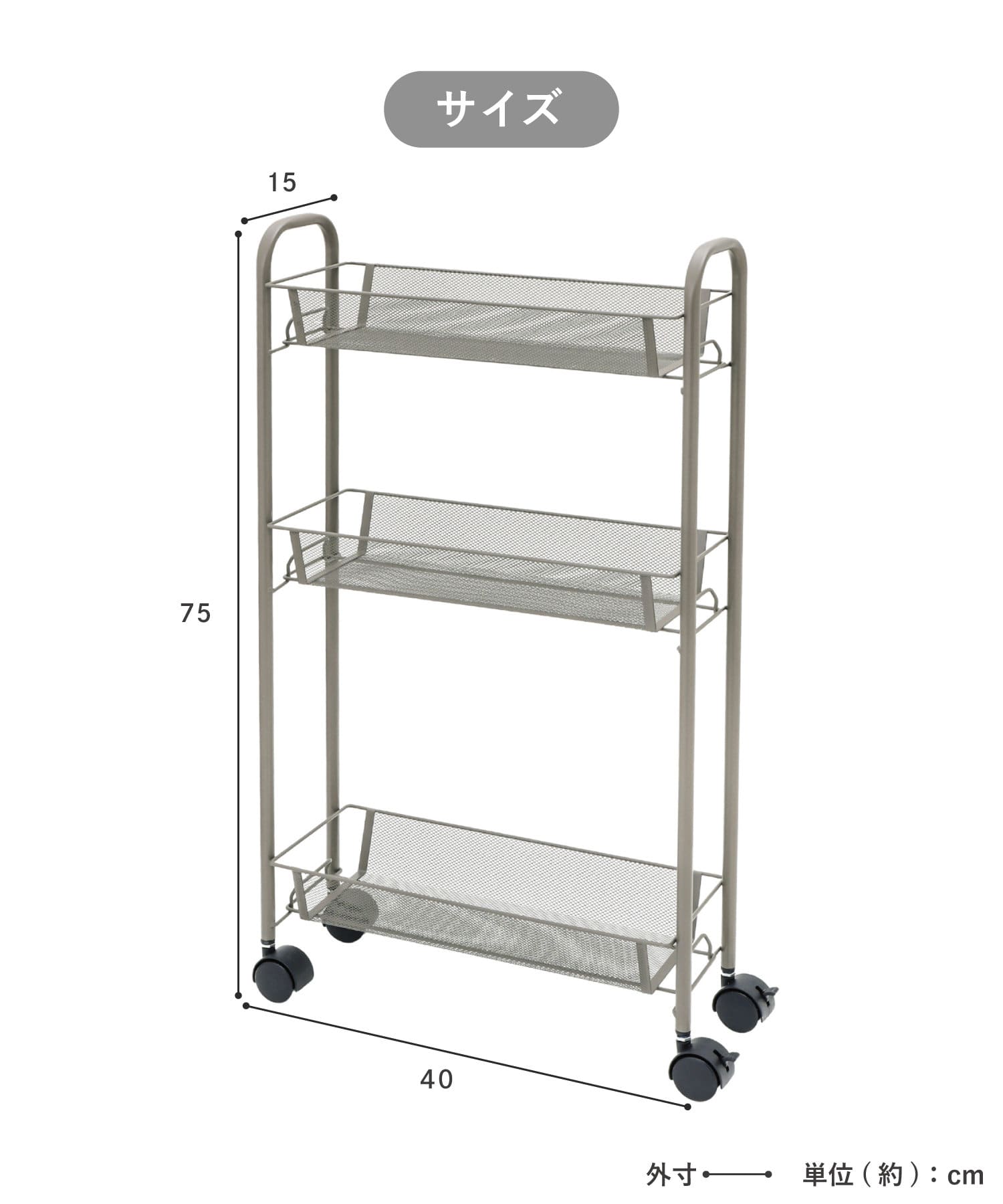 サイズ - 0 約高さ75×横幅15×奥行き40cm 3 約高さ75×横幅15×奥行き40cm 耐荷重:全体16kg(上段3kg、中段5kg、下段8kg)