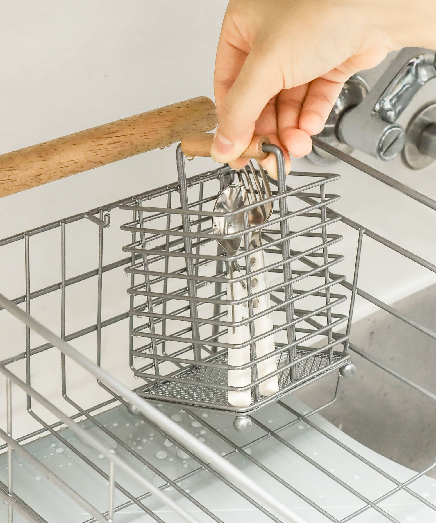●カトラリー類は垂直に入れてください。カトラリー類の種類や大きさによっては、ワイヤーの間からはみ出したり、入らない場合があります。