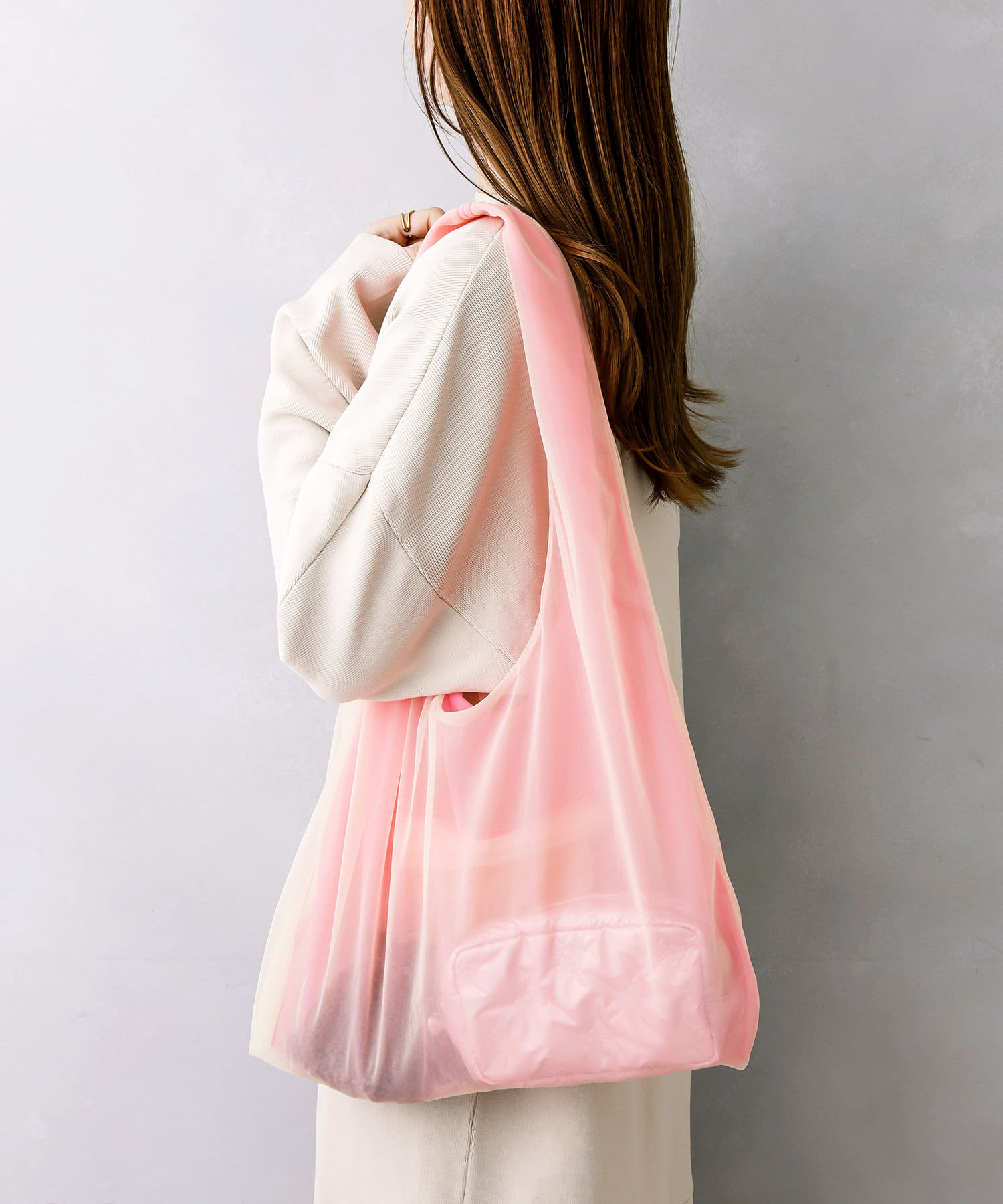 ●2色のチュール生地を重ねたお洒落なエコバッグ。