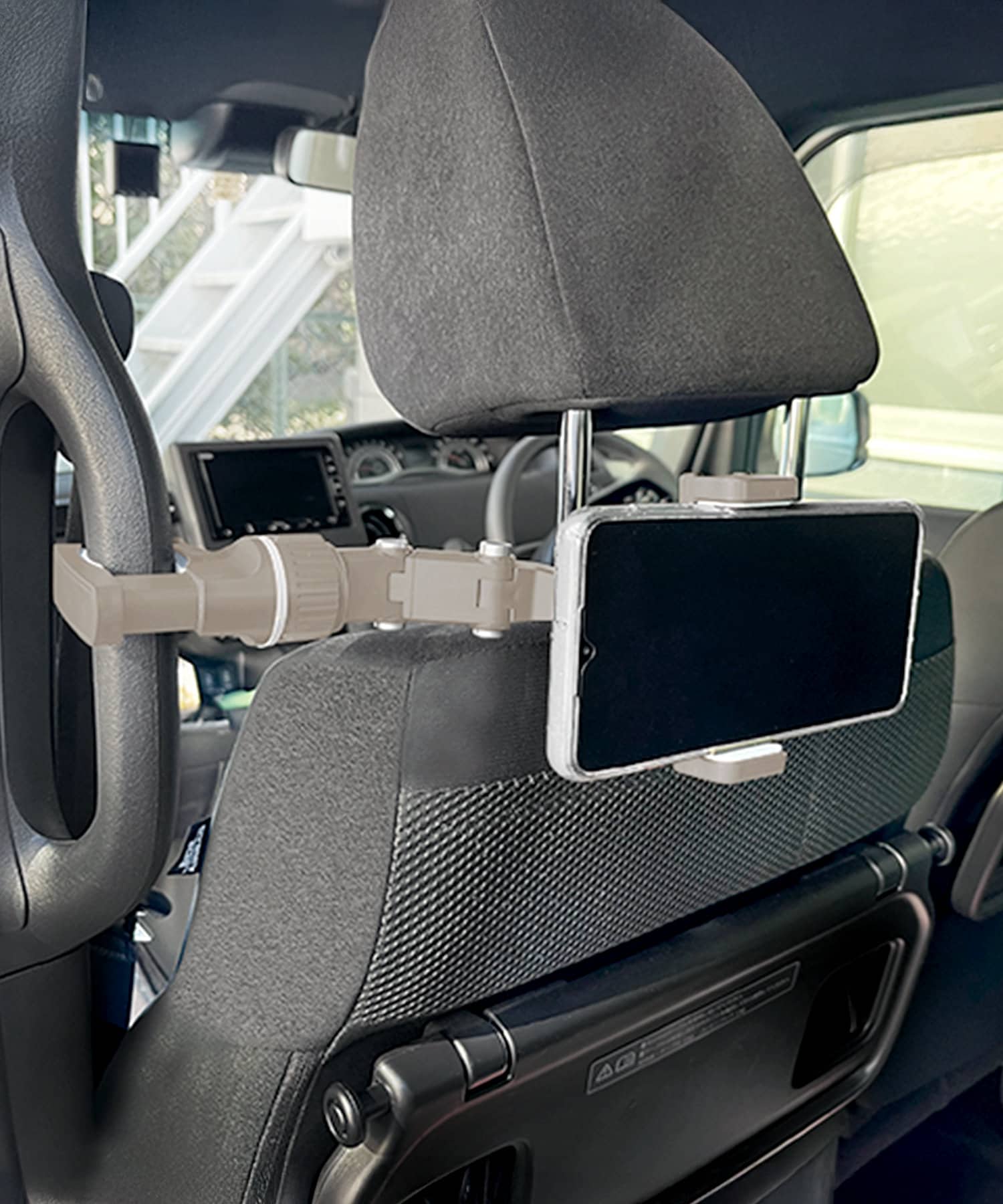 2.本体上部の調整ネジを回し、車内の挟める箇所に挟んでご使用ください。3箇所で角度調整が可能です。