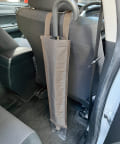 ヘッドレストに引っ掛けて使うと天井に突っかかってスッと取り出しが出来ないのが残念だが