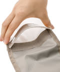 ●溜まった雨水を確認、捨てやすい面ファスナーの透明ポケット付きです。