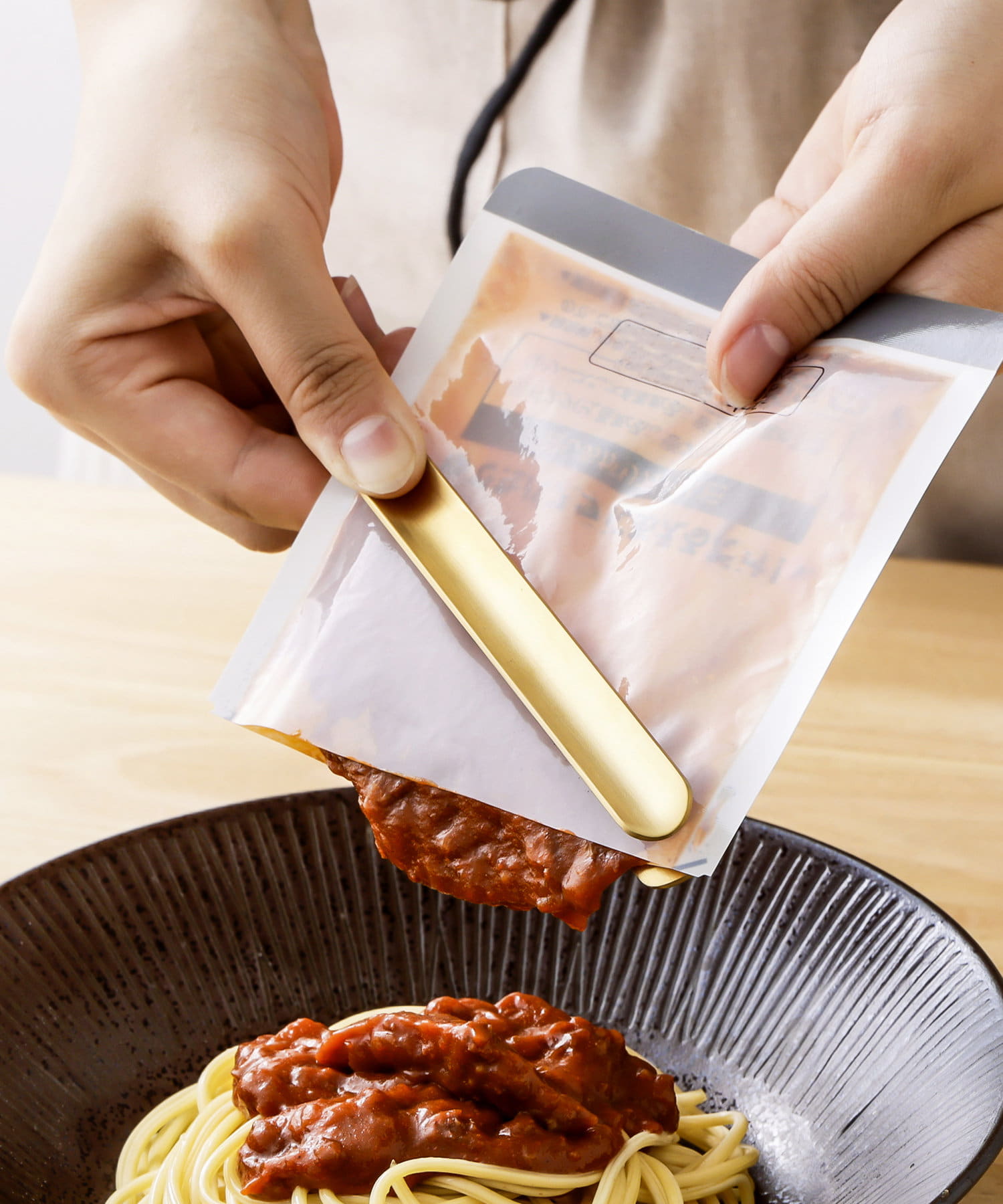 ●レトルトパウチなどの袋入り食材をしぼりだすのに便利なアイテム!
