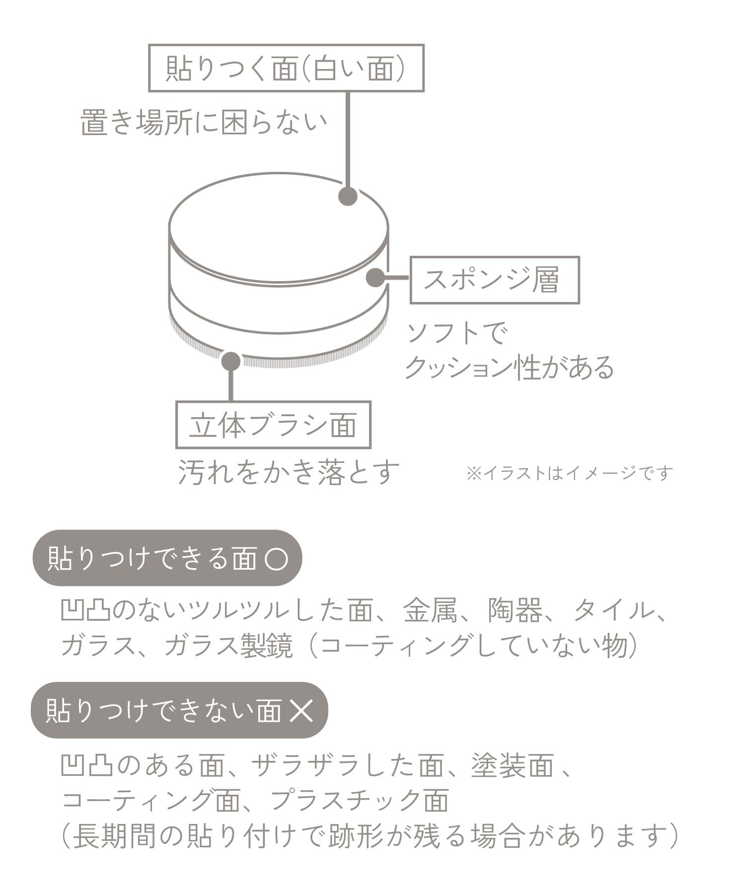 ●使用後はタイルや鏡などに貼り付けて浮かせて収納できます。