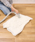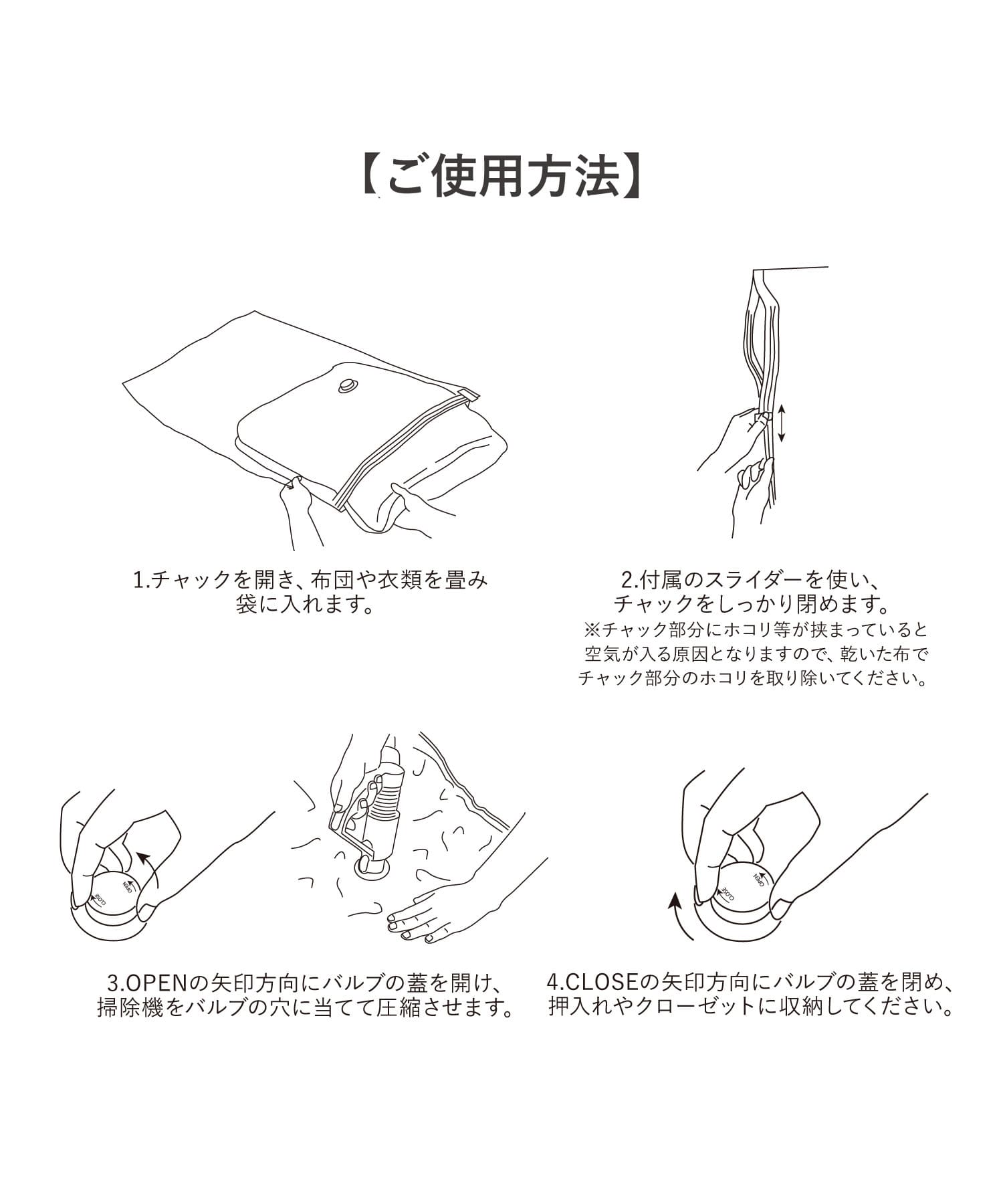 ●バルブの穴に掃除機を当てると衣類が圧縮されて平らになり、かさばりやすいお布団やコートを省スペースに収納できます。