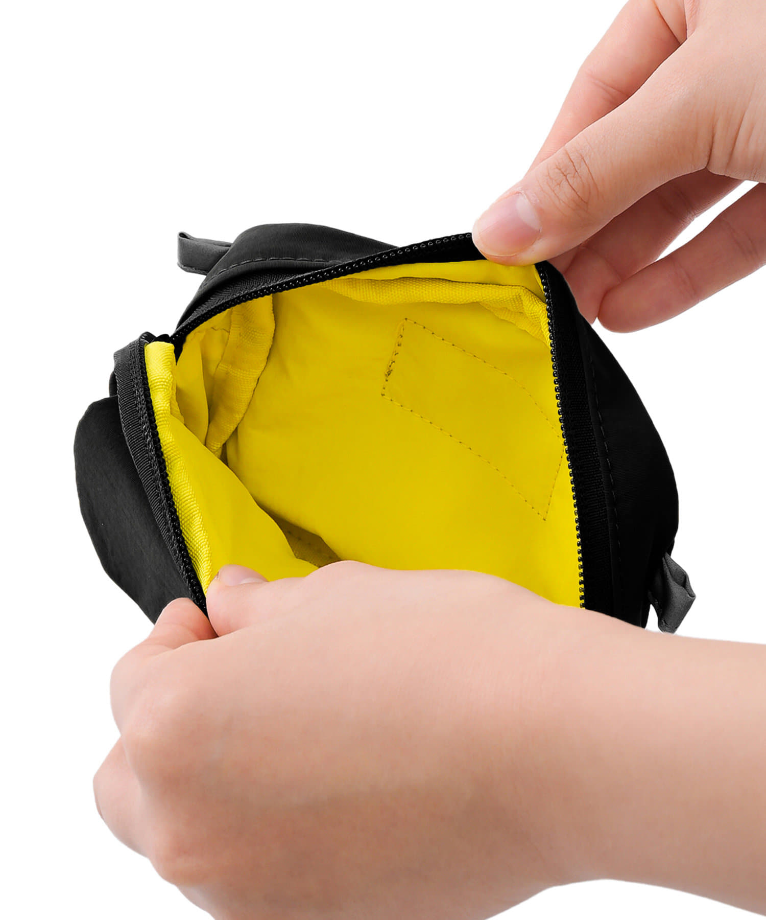 ●スナップボタンとファスナー開閉の2つのポケットで、用途に合わせて収納。