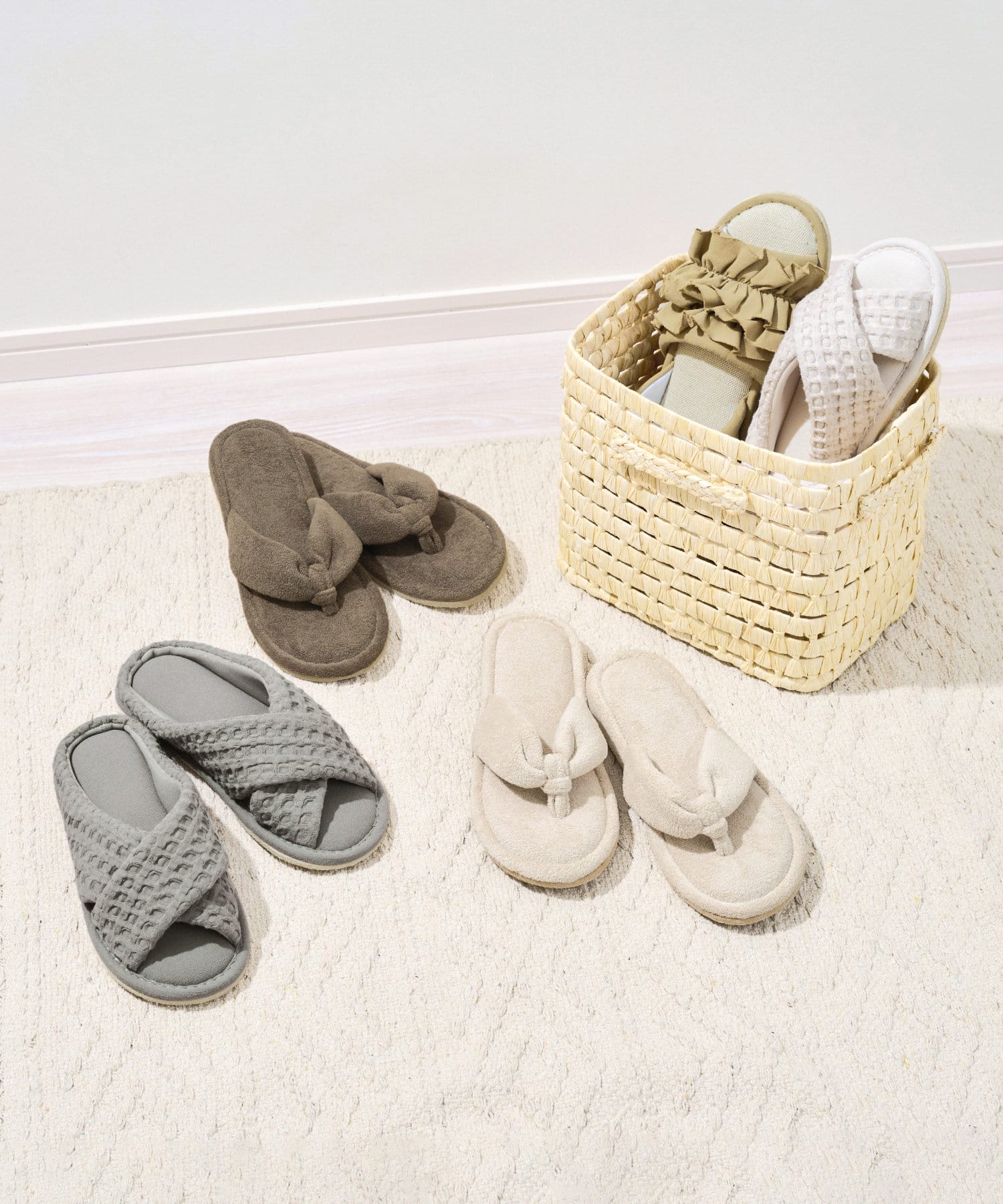 購入場所:店舗パイル生地で、お風呂後のルームシューズにピッタリ!