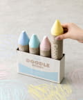 100均のチョークには無いかわいい色と持ちやすい大きなサイズ。重さが心配でしたが本人はお気に入りで夢中で描いてました。水ですぐ消えるのも良かったです。