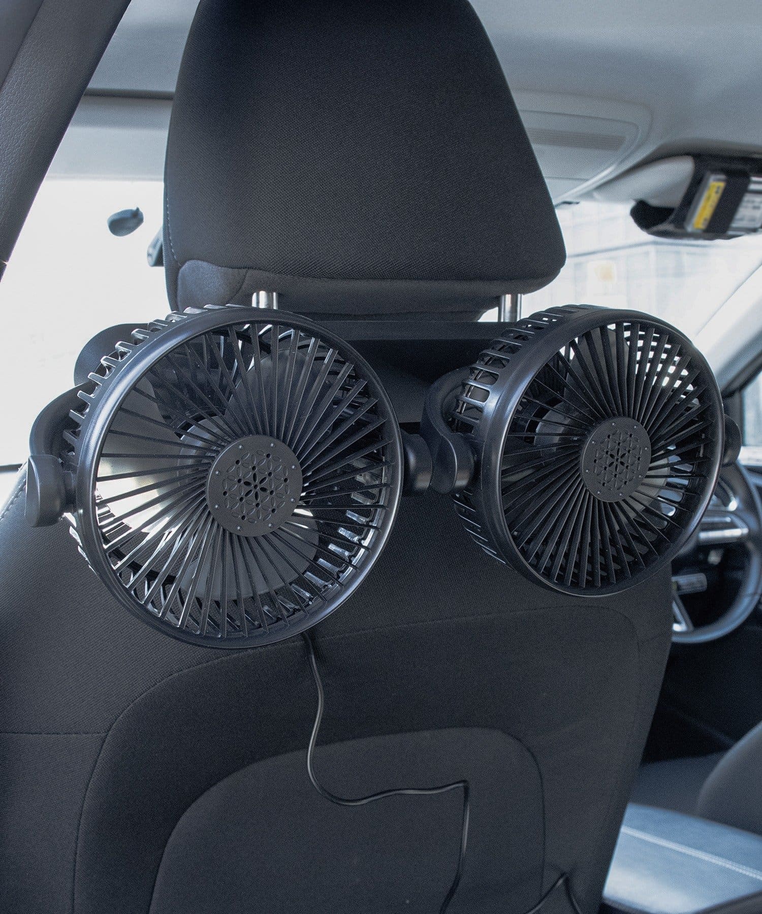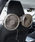 ヘッドレストの一つはタブレットを付けているので、一つで扇風機二つ、しかも独立して使えるなんて最高です!