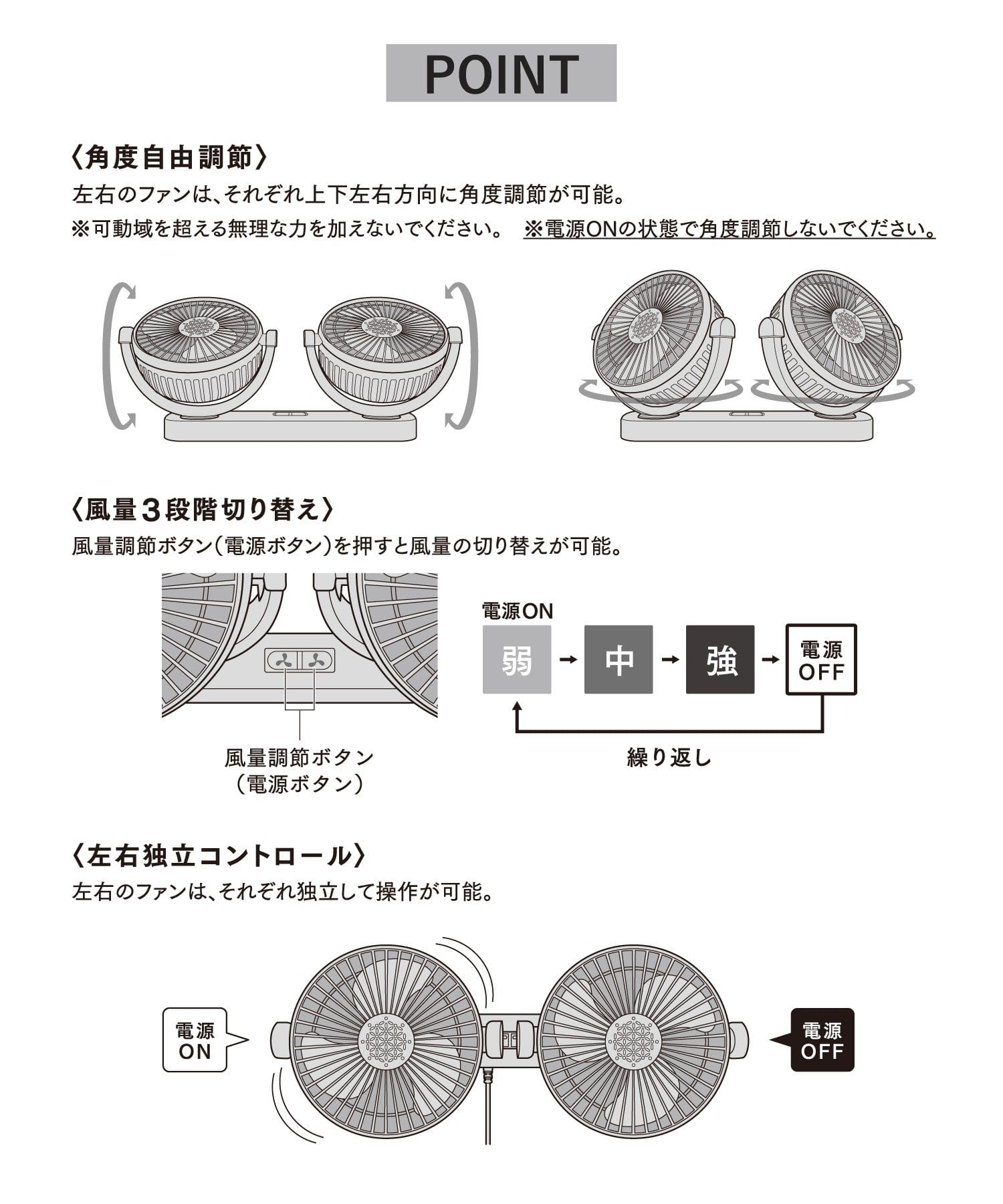 ●ファンは、それぞれ電源のオン・オフや角度の調節が個別にできます◎
