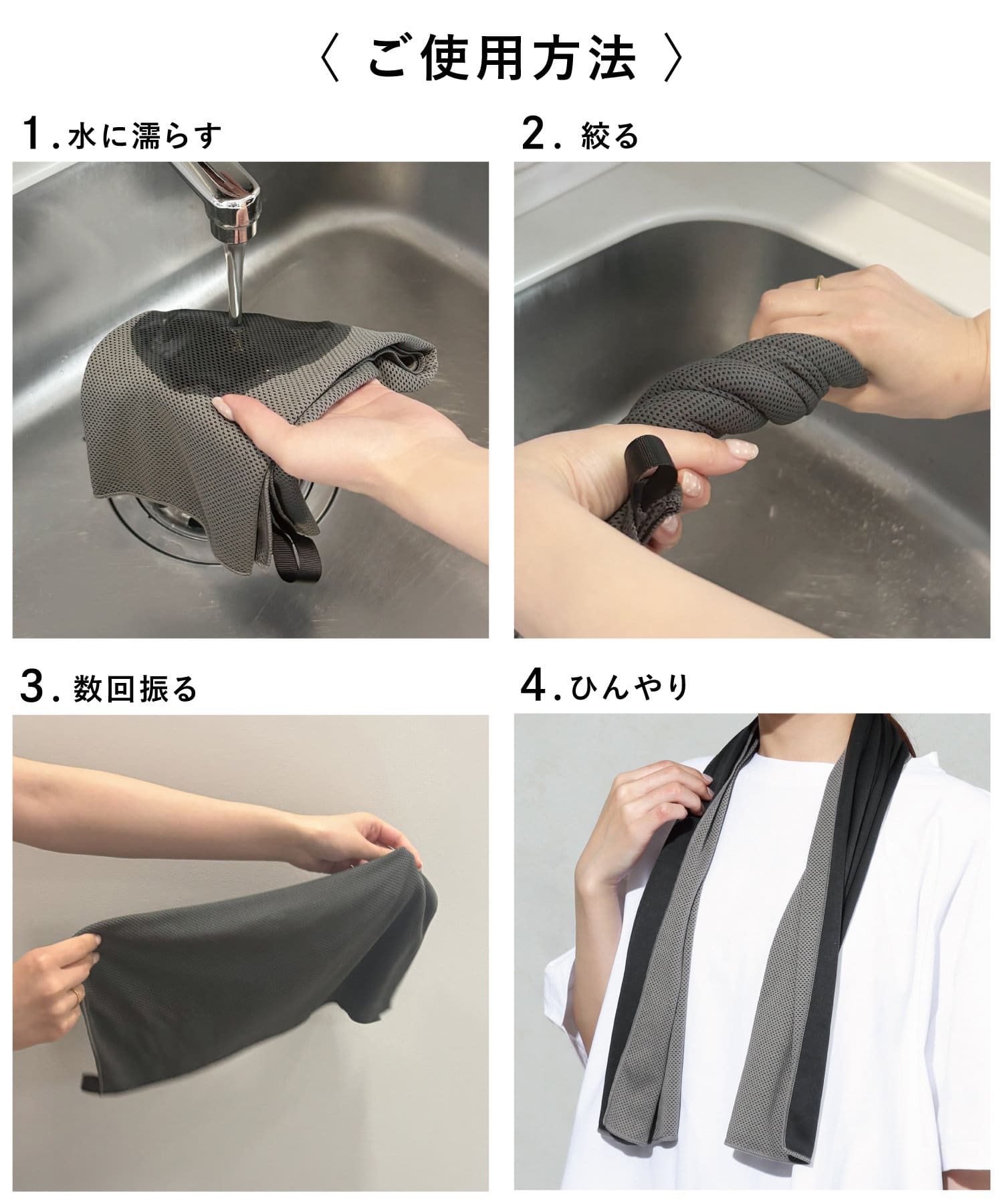 ●水に濡らしてひんやりの毎日使いたくなるクールタオル。暑い日のリフレッシュにぴったりです!
