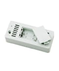 電池はマイナス側を先に入れ、プラス側の上から押し込みます。