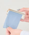 2.新しいあぶらとり紙をケース中に入れ、紙を少し引き出した状態で、中蓋と蓋を元に戻してください。