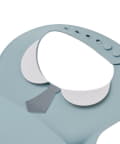こぼしてもキャッチしてくれる。昔の育児を思い出します。ただ硬めなシリコンなので、あごが擦れないか少し気にしています。