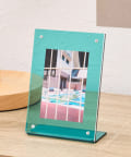 ●2枚のアクリル板の間に写真をはさみ、マグネットで固定します。