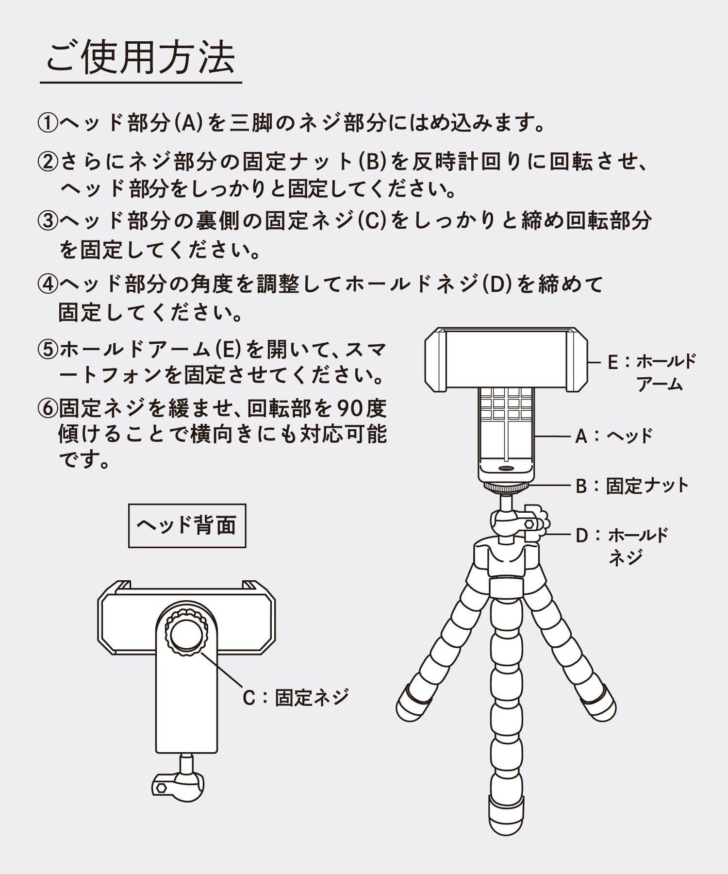 ※ホールドネジ(D)はヘッドの角度を調整し固定するものですが、完全に固定はしません。