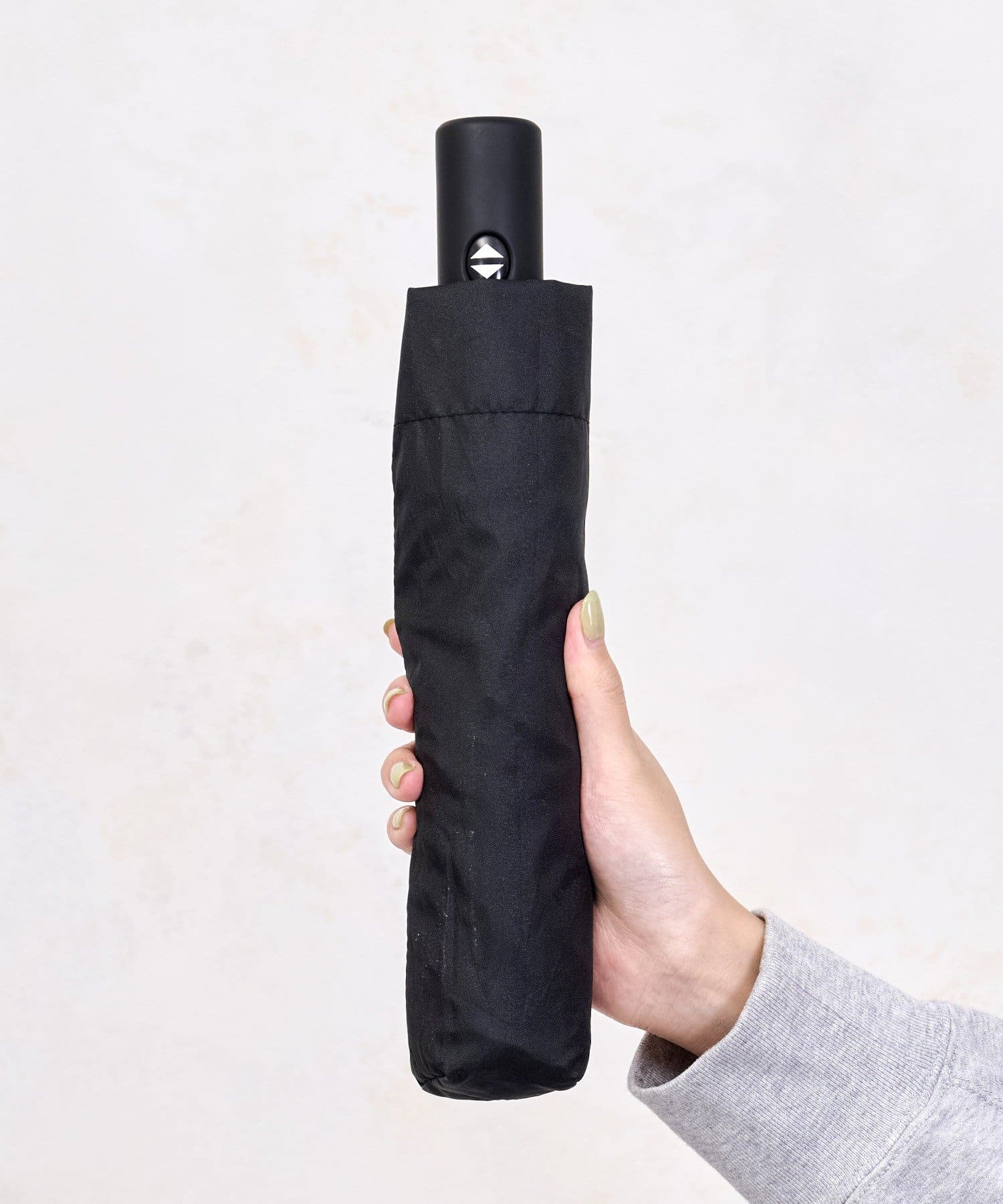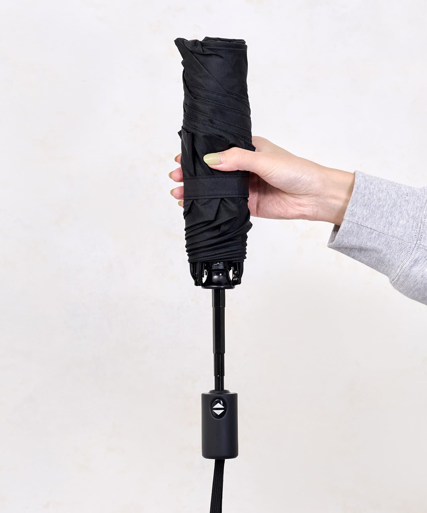 傘が開いた状態でハンドルのボタンを押すと、自動で親骨が折りたたまれます。親骨が折りたたまれた後に、手動で中棒を「カチッ」と音がするまで縮めてください。閉じる際は、髪や手を巻き込まないようにご注意ください。