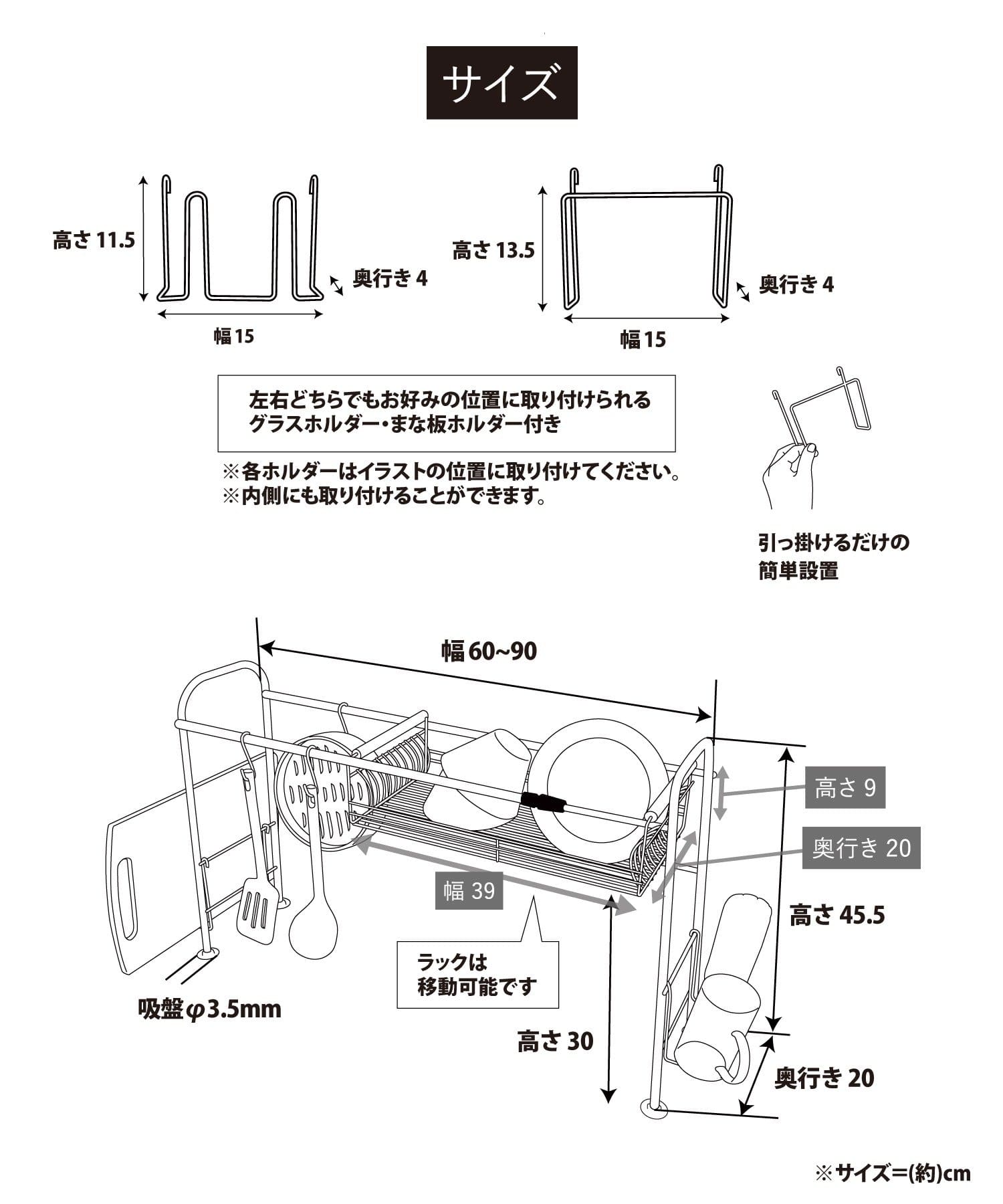 <本体>約高さ45.5×幅60~90×奥行き20cm(ホルダー除く)