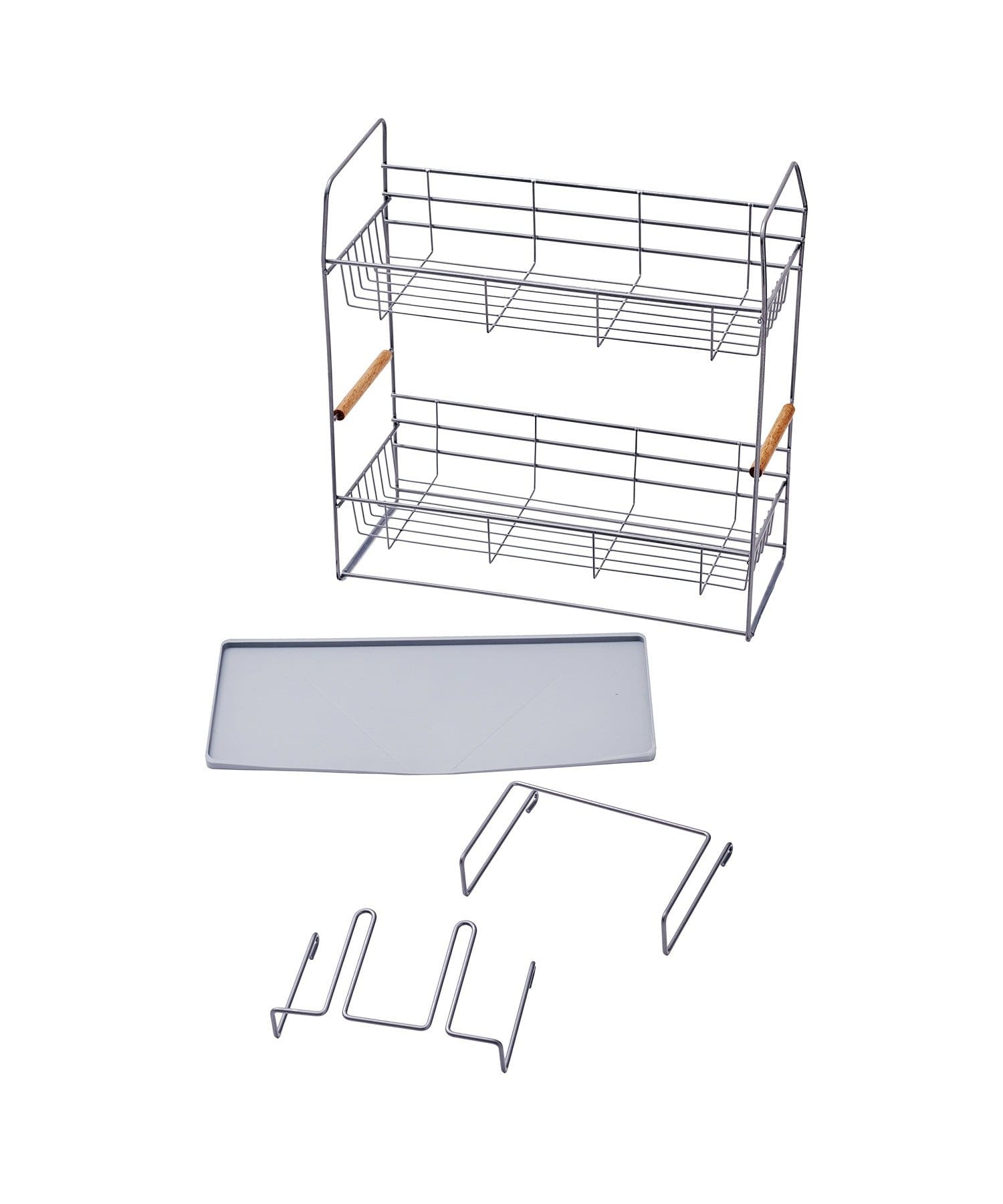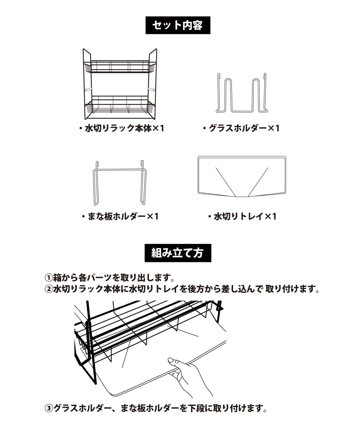 セット内容:水切りラック本体、グラスホルダー、まな板ホルダー、水切りトレイ