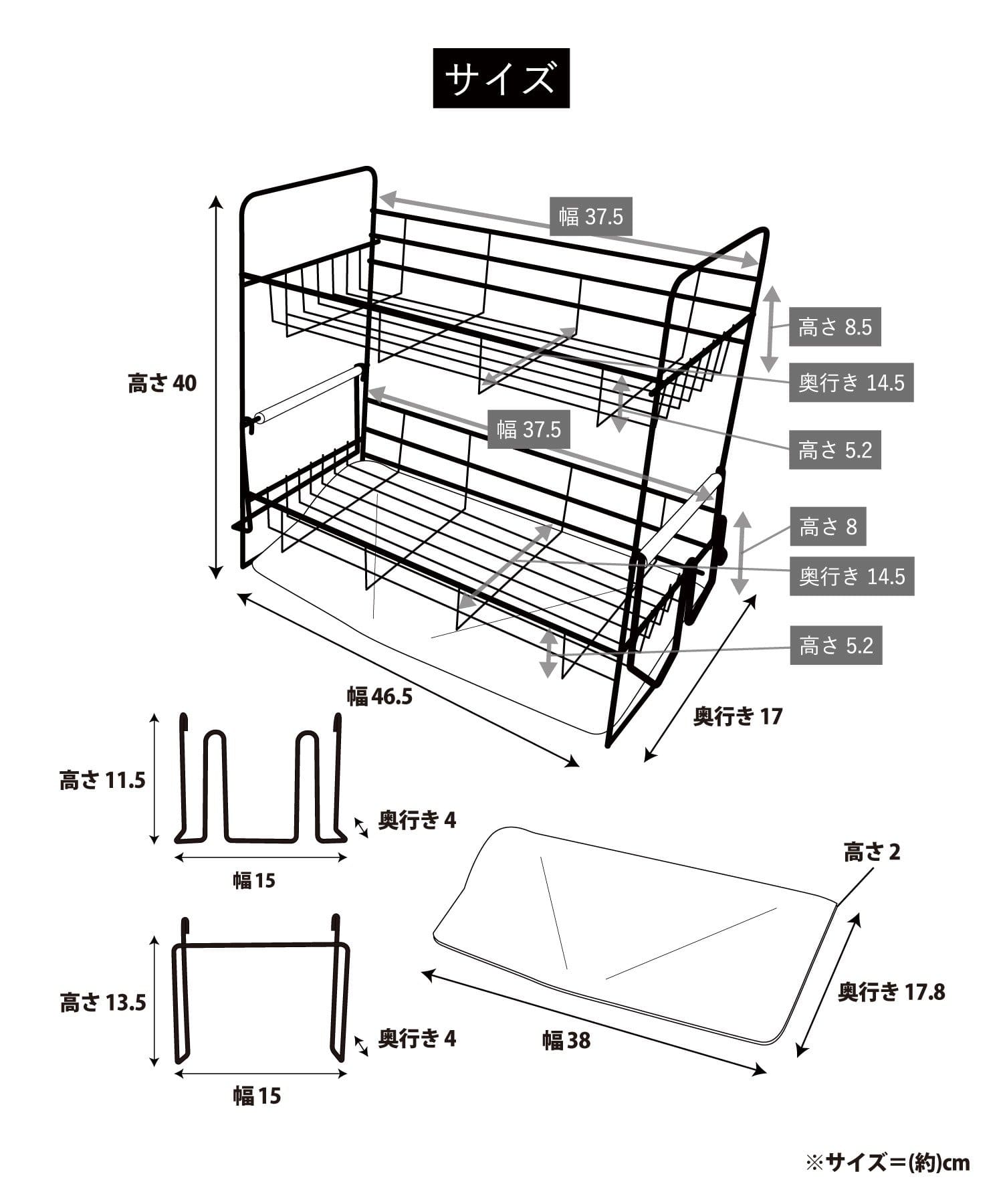 <ラック部分内寸> (上段)約高さ5.2/8.5×幅37.5×奥行き14.5cm