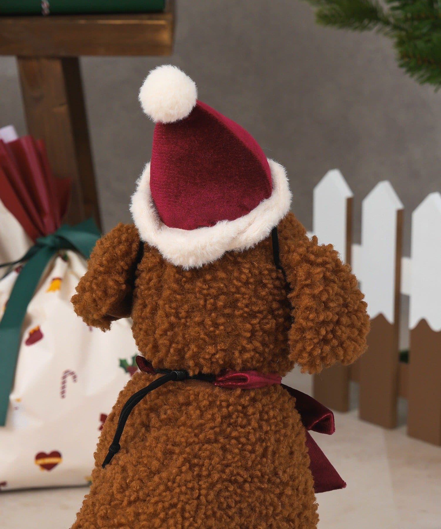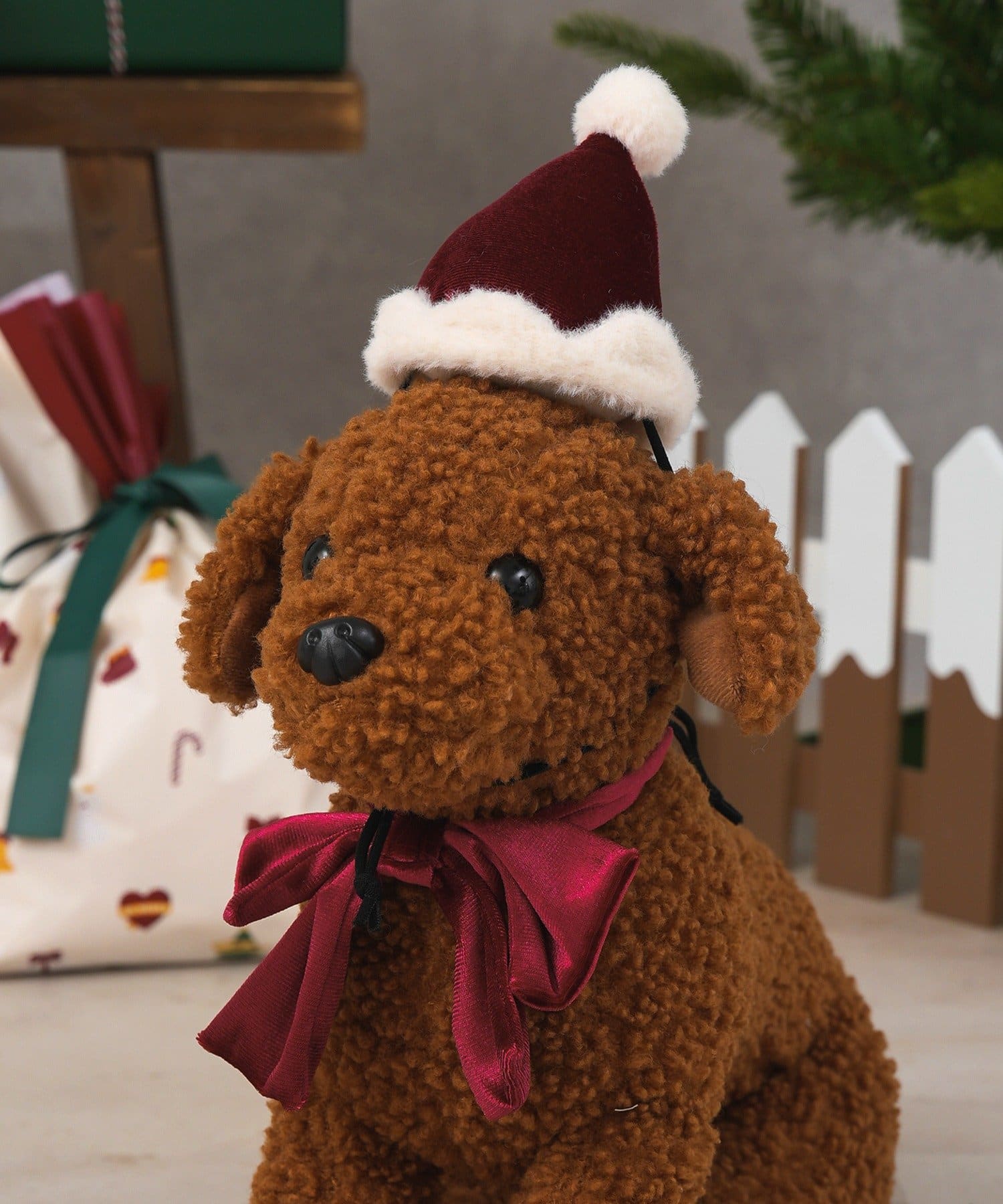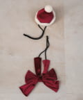 ●大きなリボンとポンポン付きの帽子でクリスマスパーティーの主役になれます!