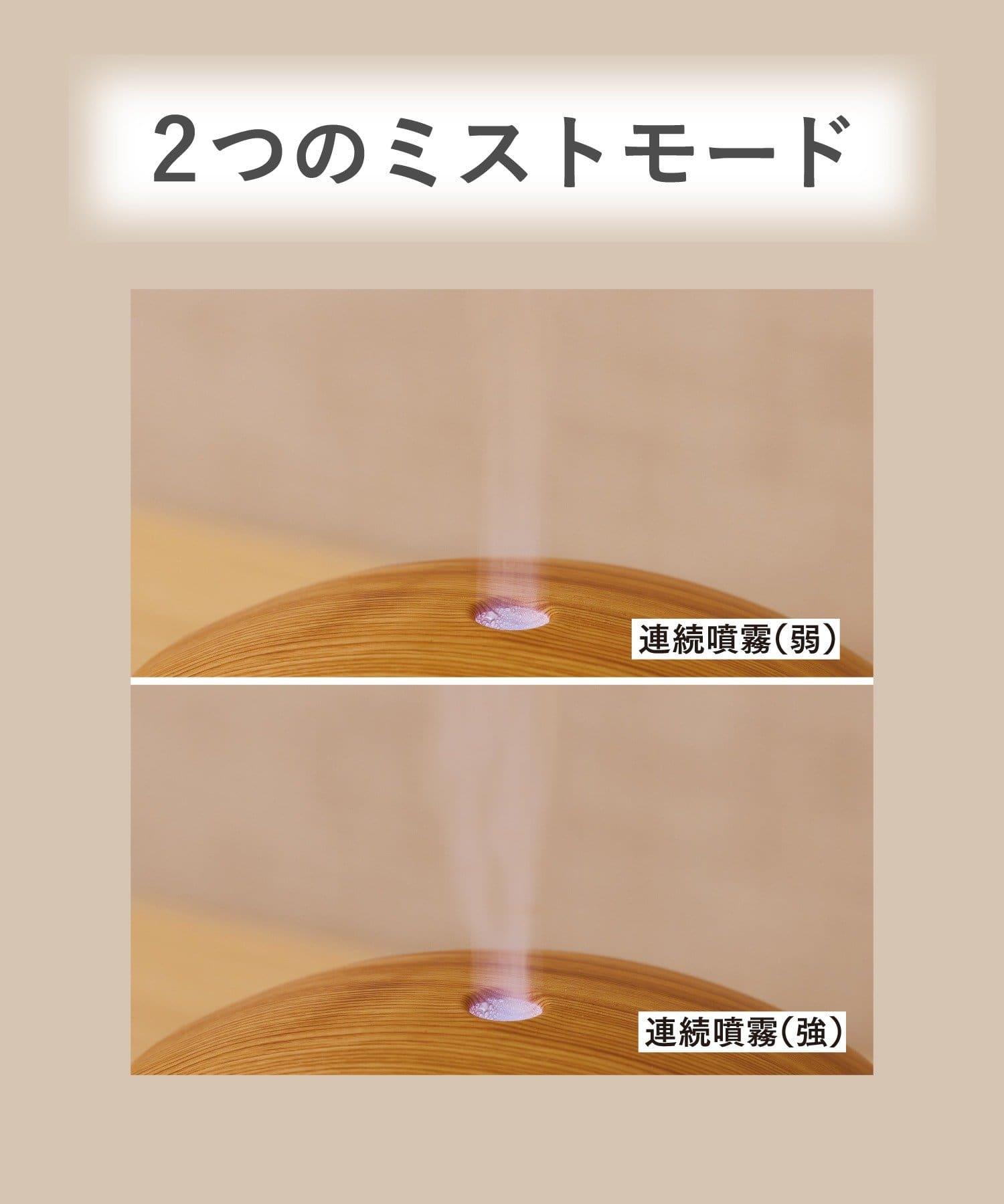 ●常時ミストが出る「連続モード(強)」と「連続モード(弱)」の2種類のモードを選べます。