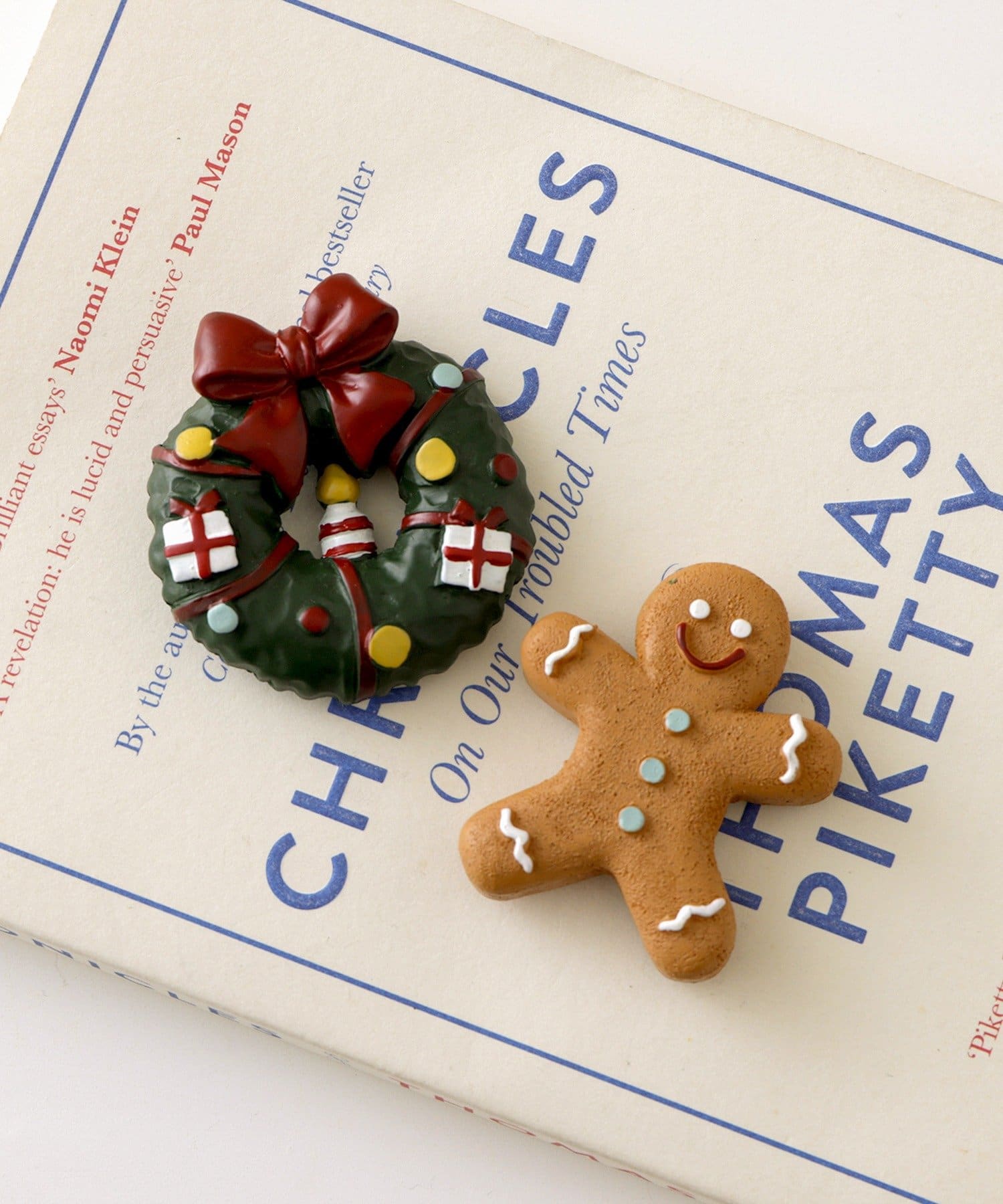 ●リースとジンジャーブレッドマンがモチーフの、クリスマスシーズンにぴったりなマグネットです。
