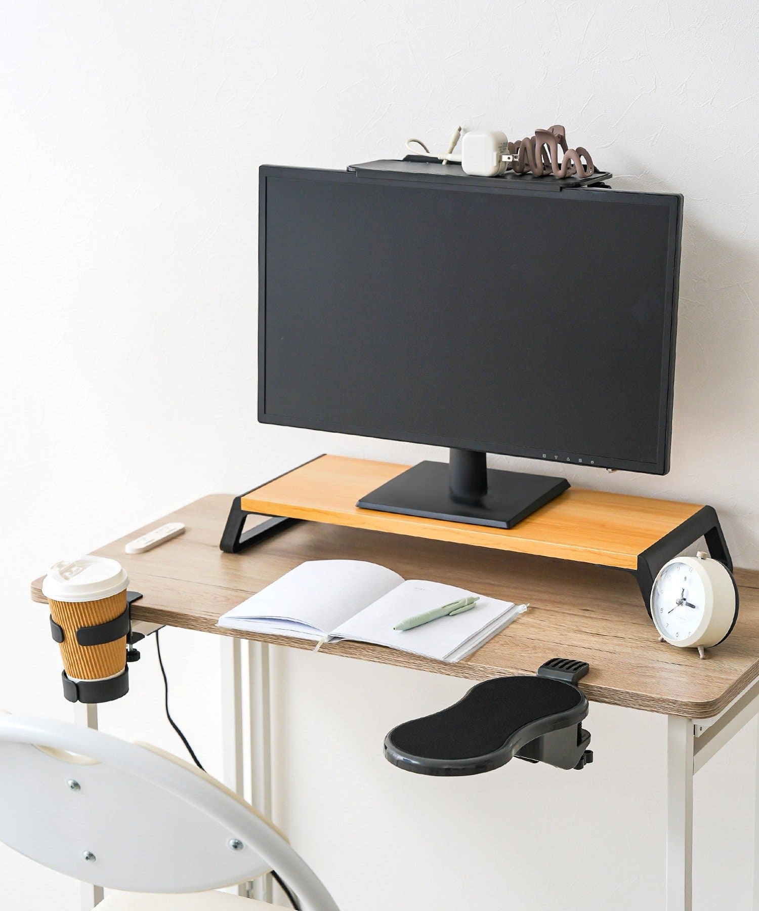 ●モニター台を置くことで、目線が上がり姿勢よく快適にPC作業ができます。
