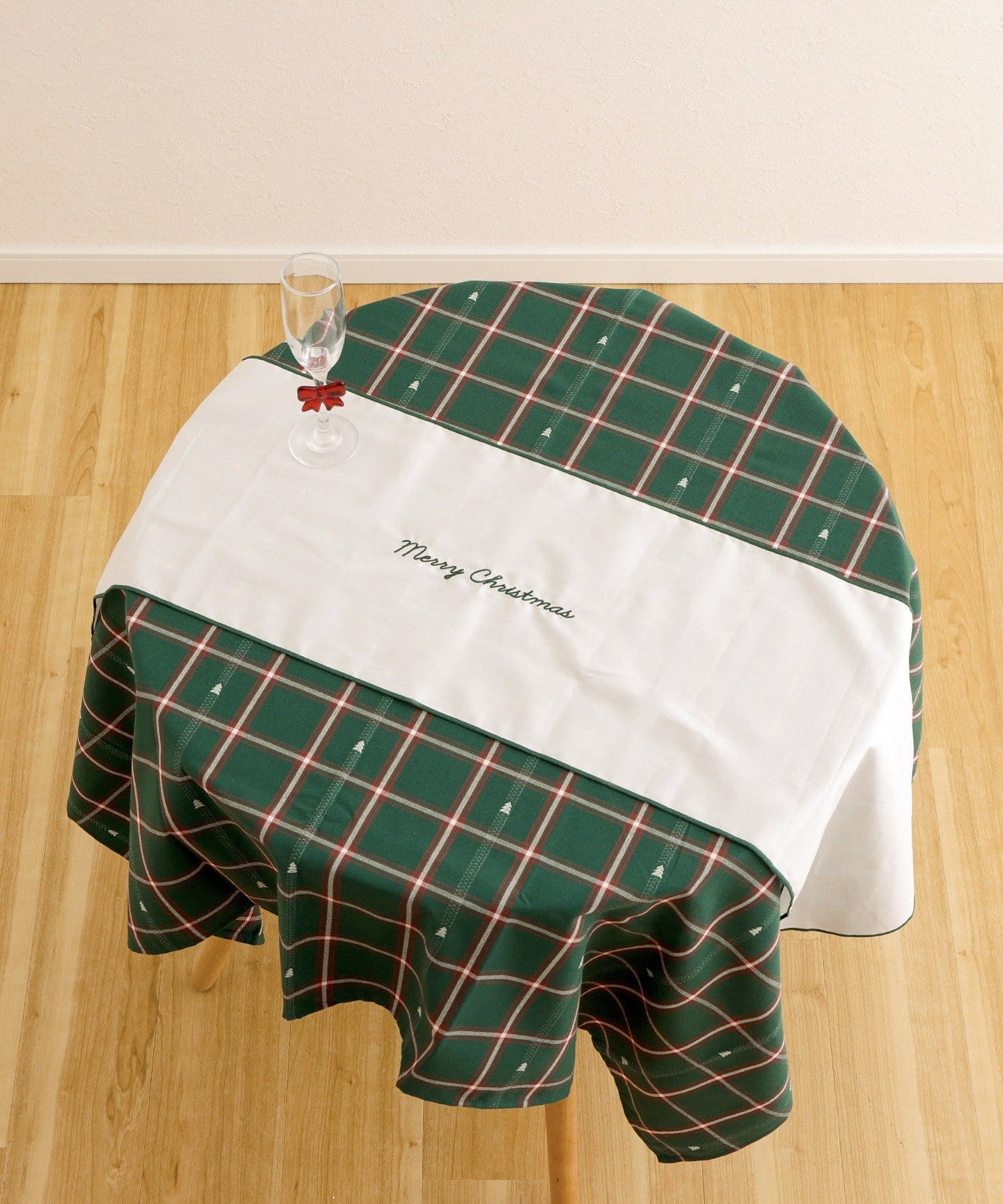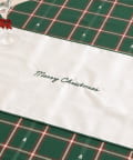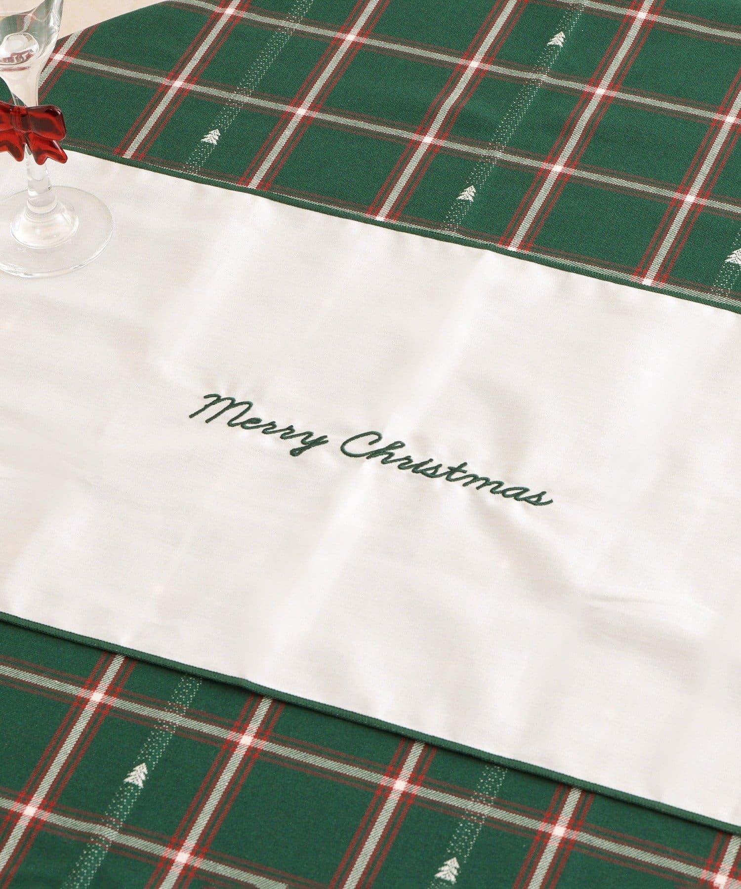 ●クリスマスの雰囲気にぴったりなグリーンのフチとロゴがあしらわれたテーブルランナーです。