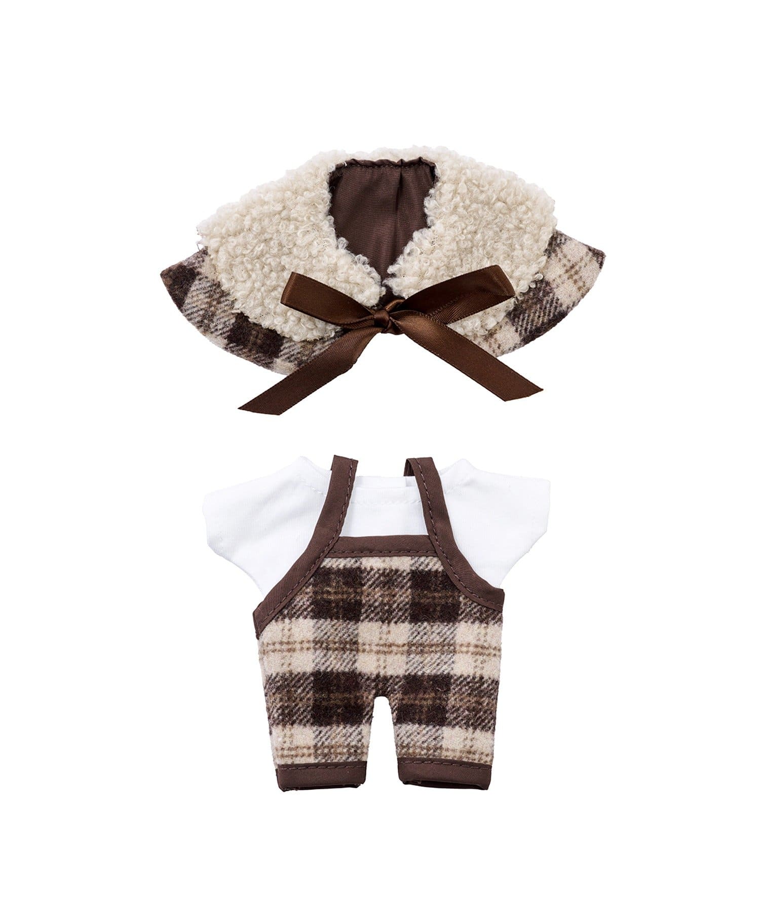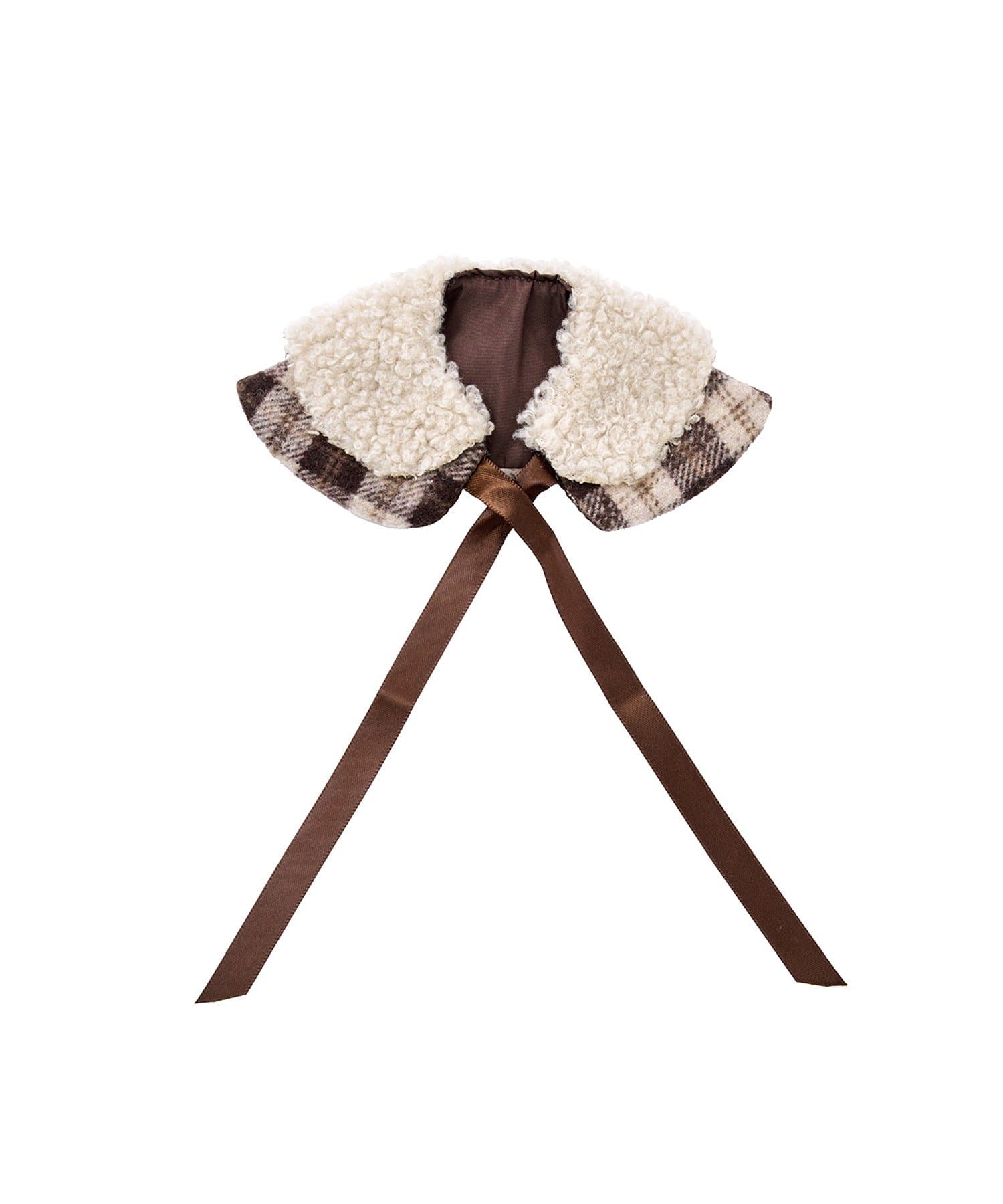 ●もこもこ素材とチェック柄の2層になったケープが、可愛らしさを引き立てます。