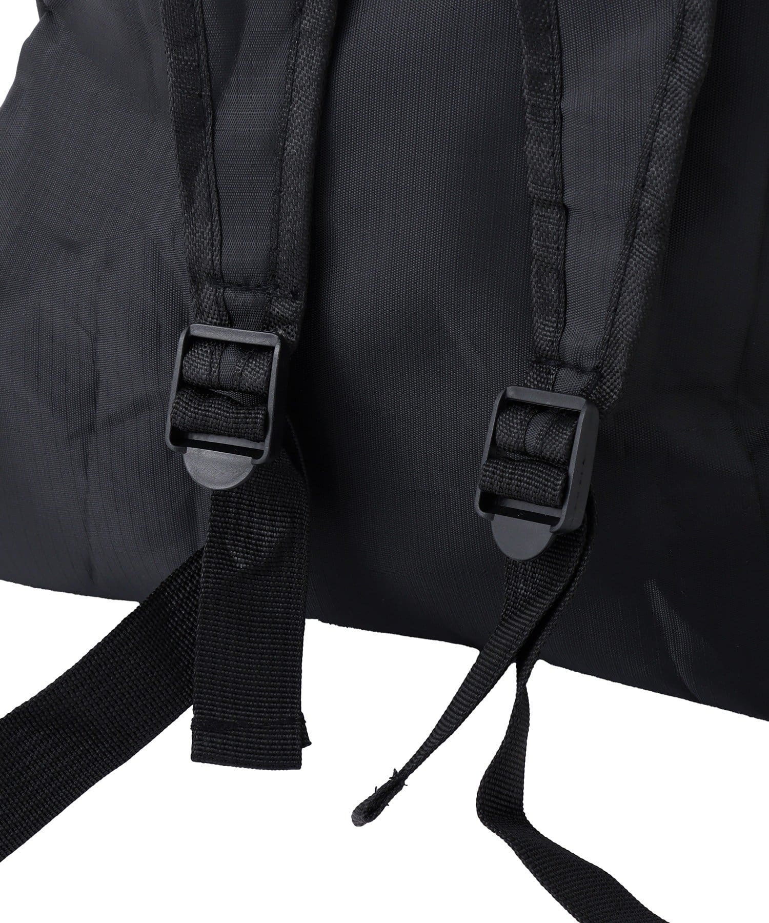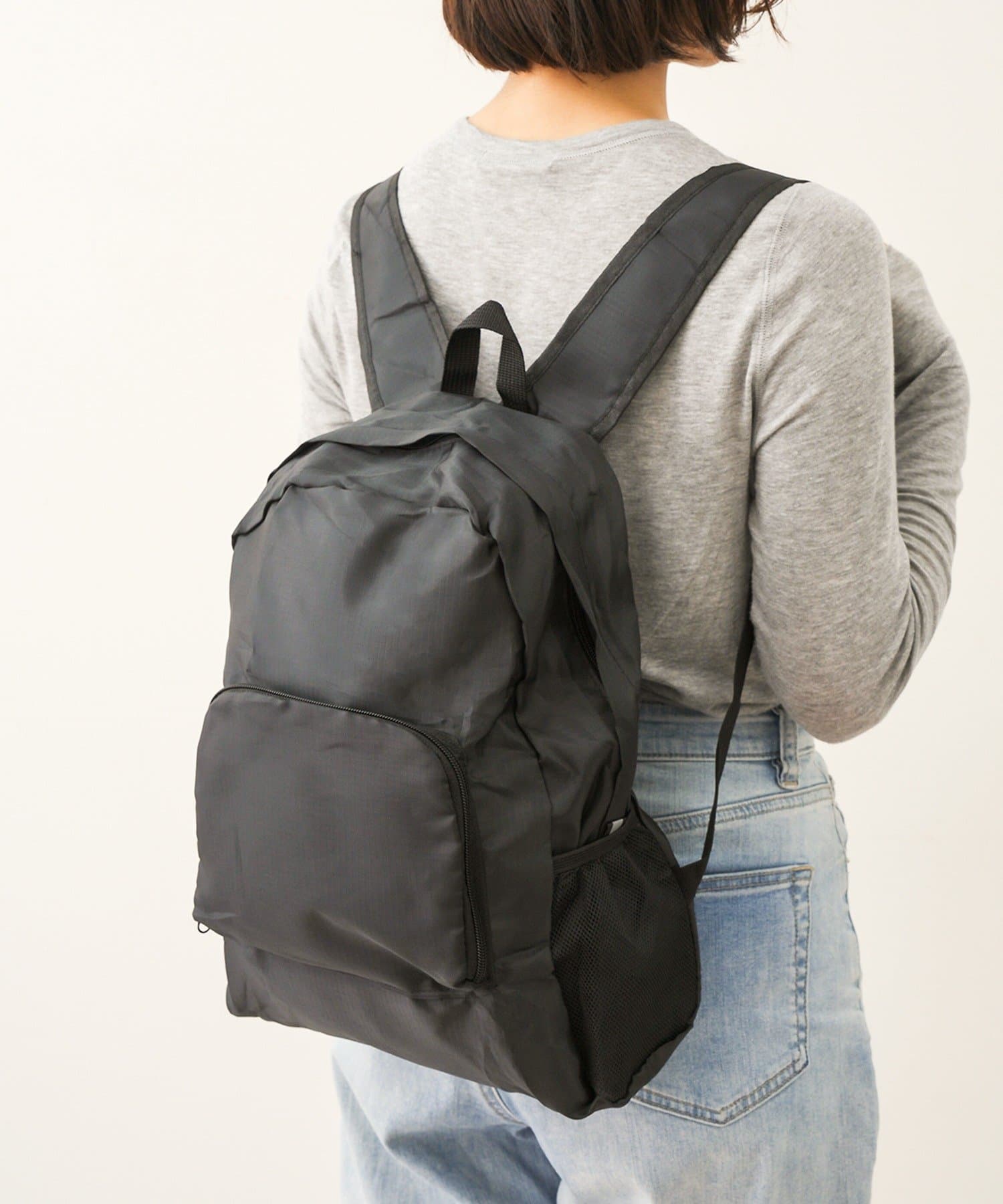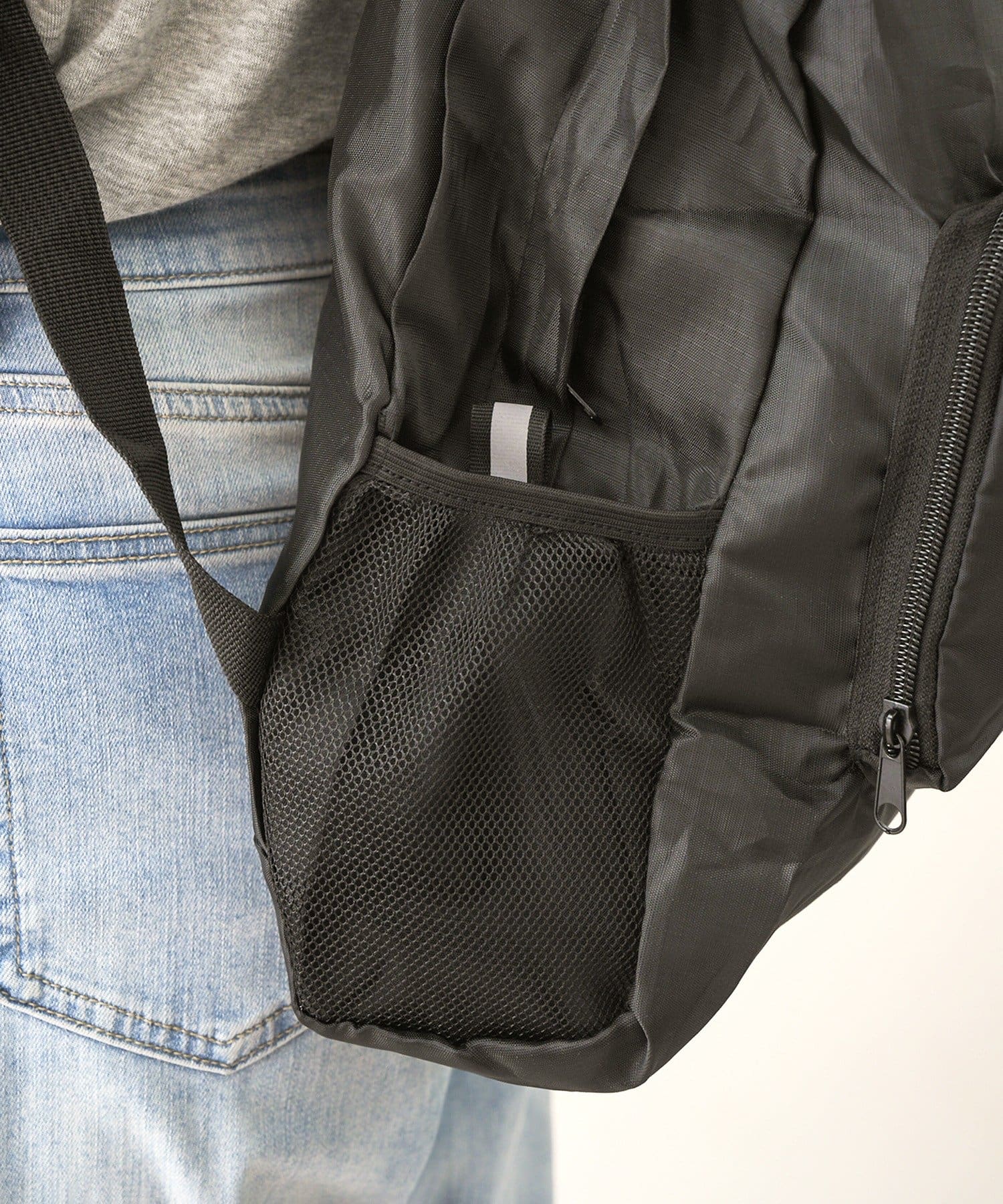 2.リュックを裏返し、ポケットのサイズに合わせてたたみます。