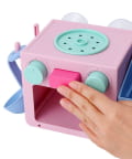 ●コンロのダイヤルを回したり、ボタンを押すとお鍋の中がぽこぽこ♪お湯が沸いたような楽しい仕掛け。