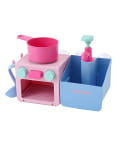 セット内容:コンロ、シンク、蛇口、なべ、おたま、吸盤×4