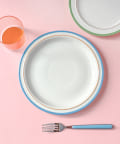 ●ワンポイントでラインが入ったバイカラーデザインで、食卓をおしゃれに彩ります。