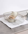 ●洗った食器の水分をしっかり切れるステンレス製の水切りカゴ。