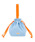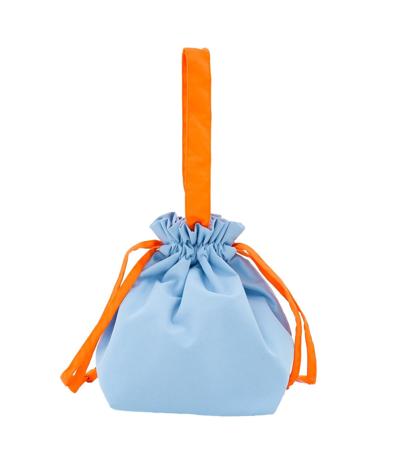 ●持ち手と本体の配色が異なるバイカラーデザインで、見た目もかわいいランチ巾着バッグ♪