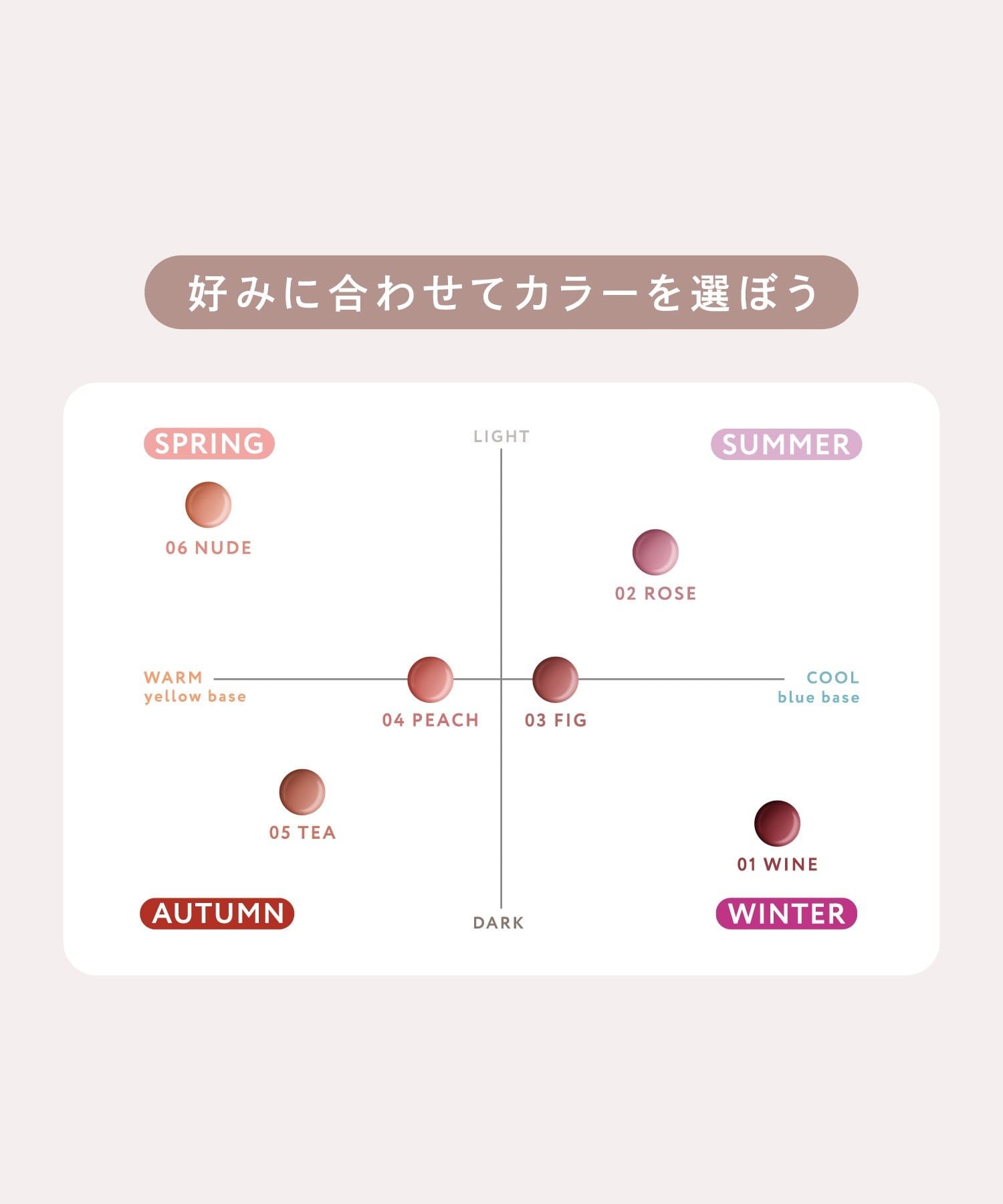 ●みずみずしさとツヤのバランスが良く、シーンを問わず使いやすい上品な仕上がりです。