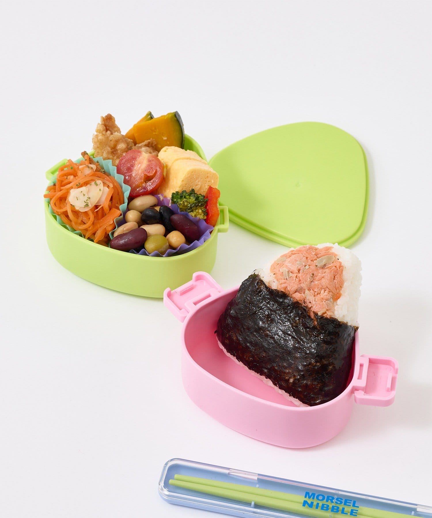 ●おにぎり型のフォルムにバイカラーデザインを合わせた、見た目もかわいいランチボックス♪