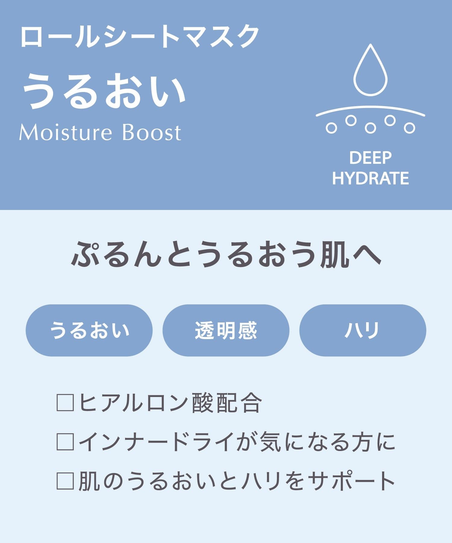 ●額にあてて下へ広げるだけで簡単に貼付できるロールシートマスクです。