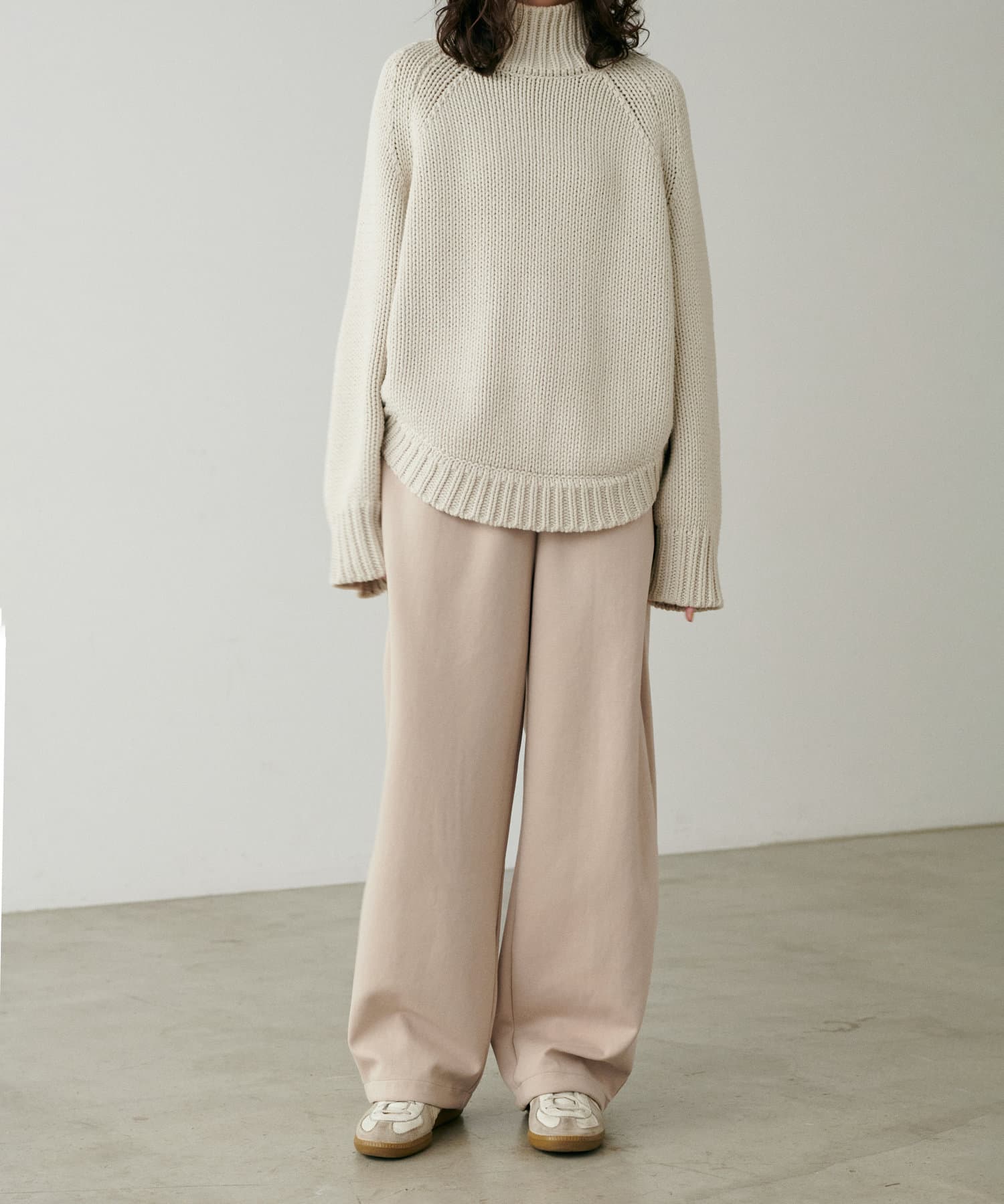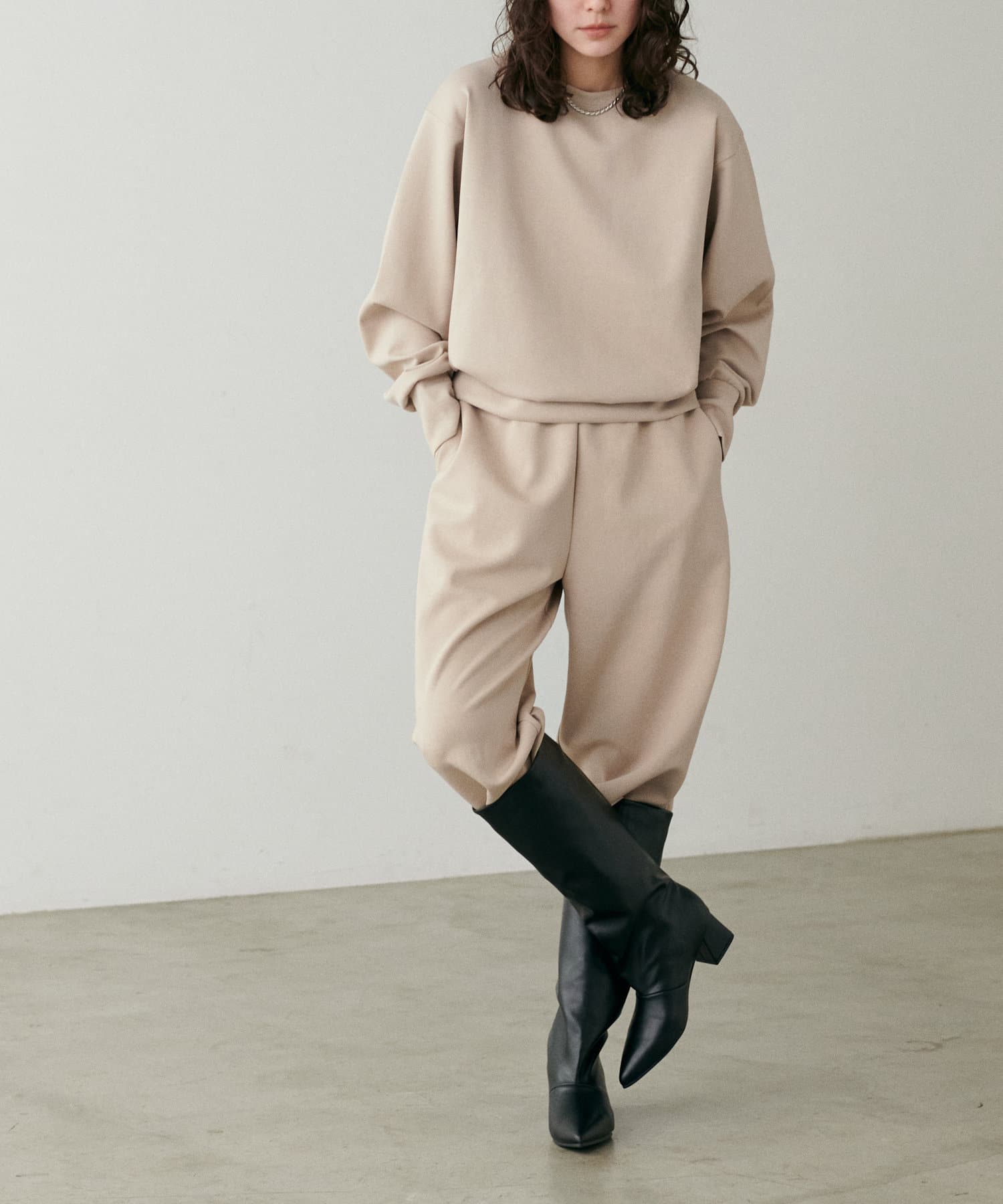 カジュアルながらも綺麗めなポンチ素材でリラクシーな着こなしが完成します。
