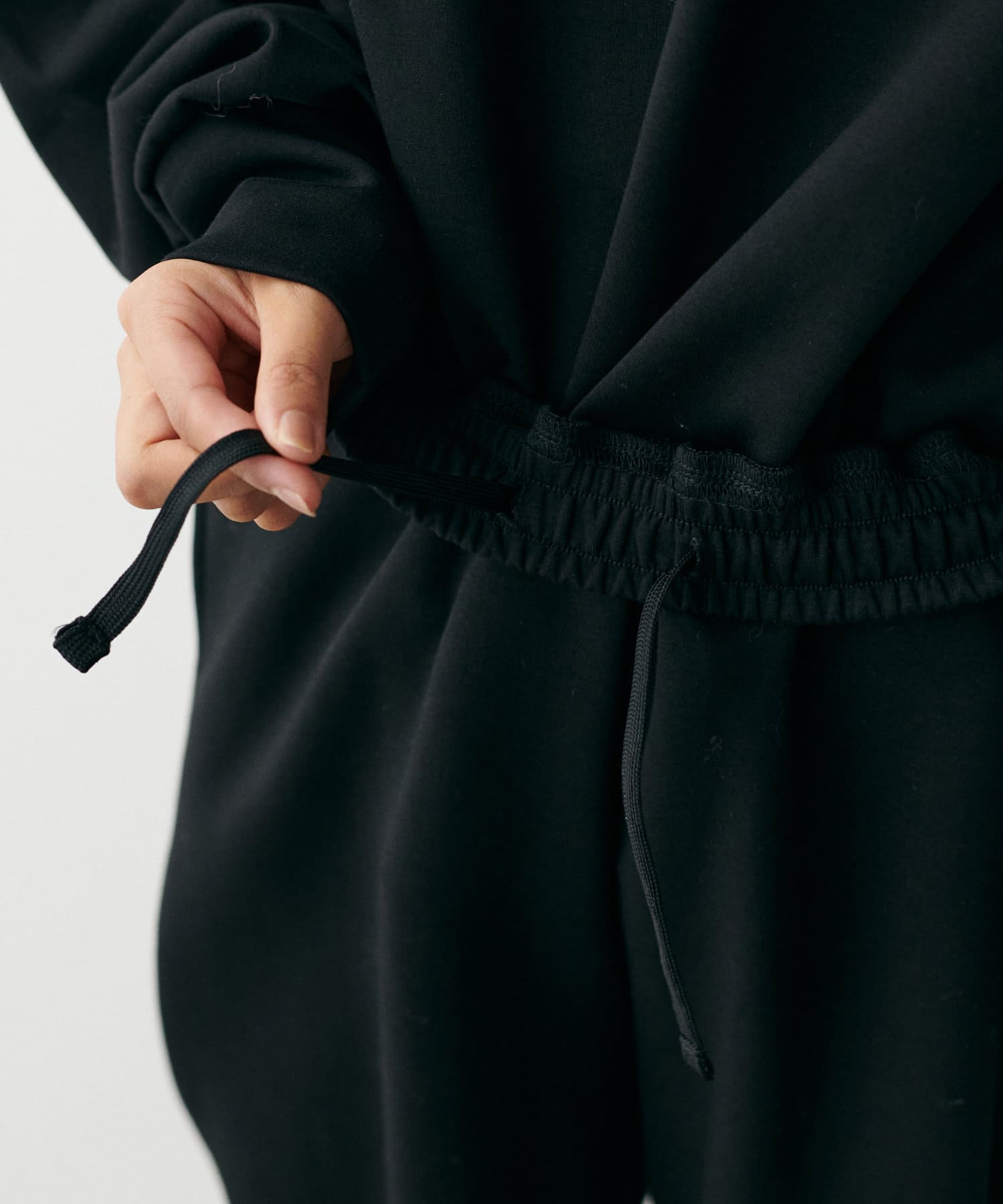 ストレスフリーな着心地。裾部分も内側の紐で絞ってシルエットを変化させることができます。