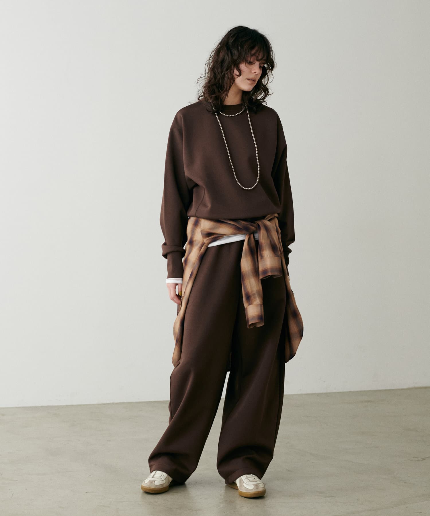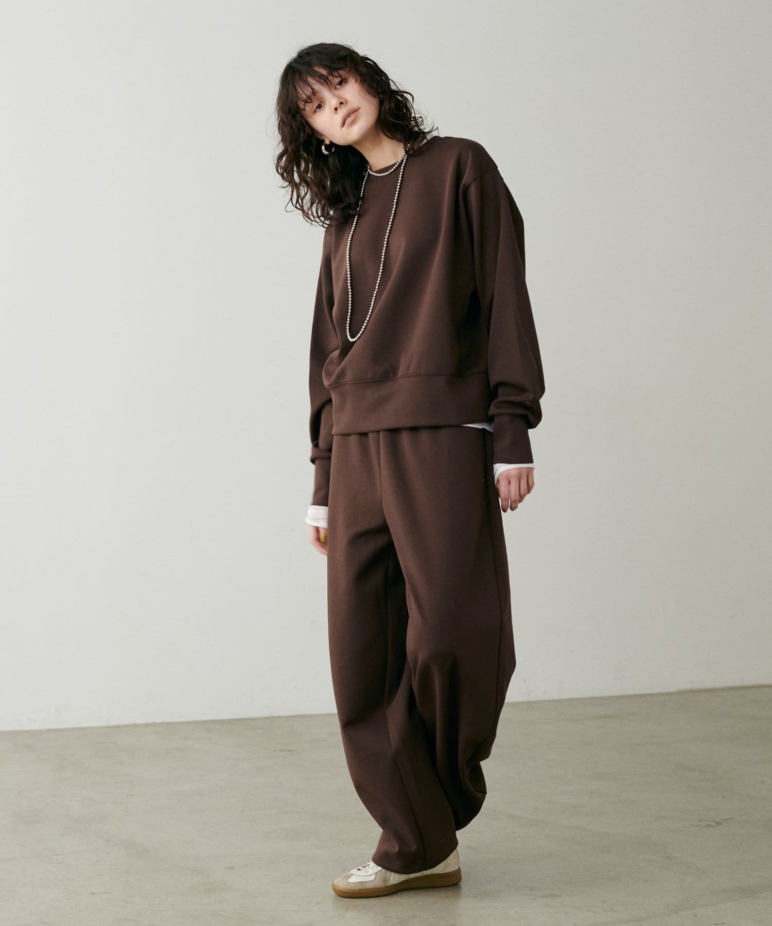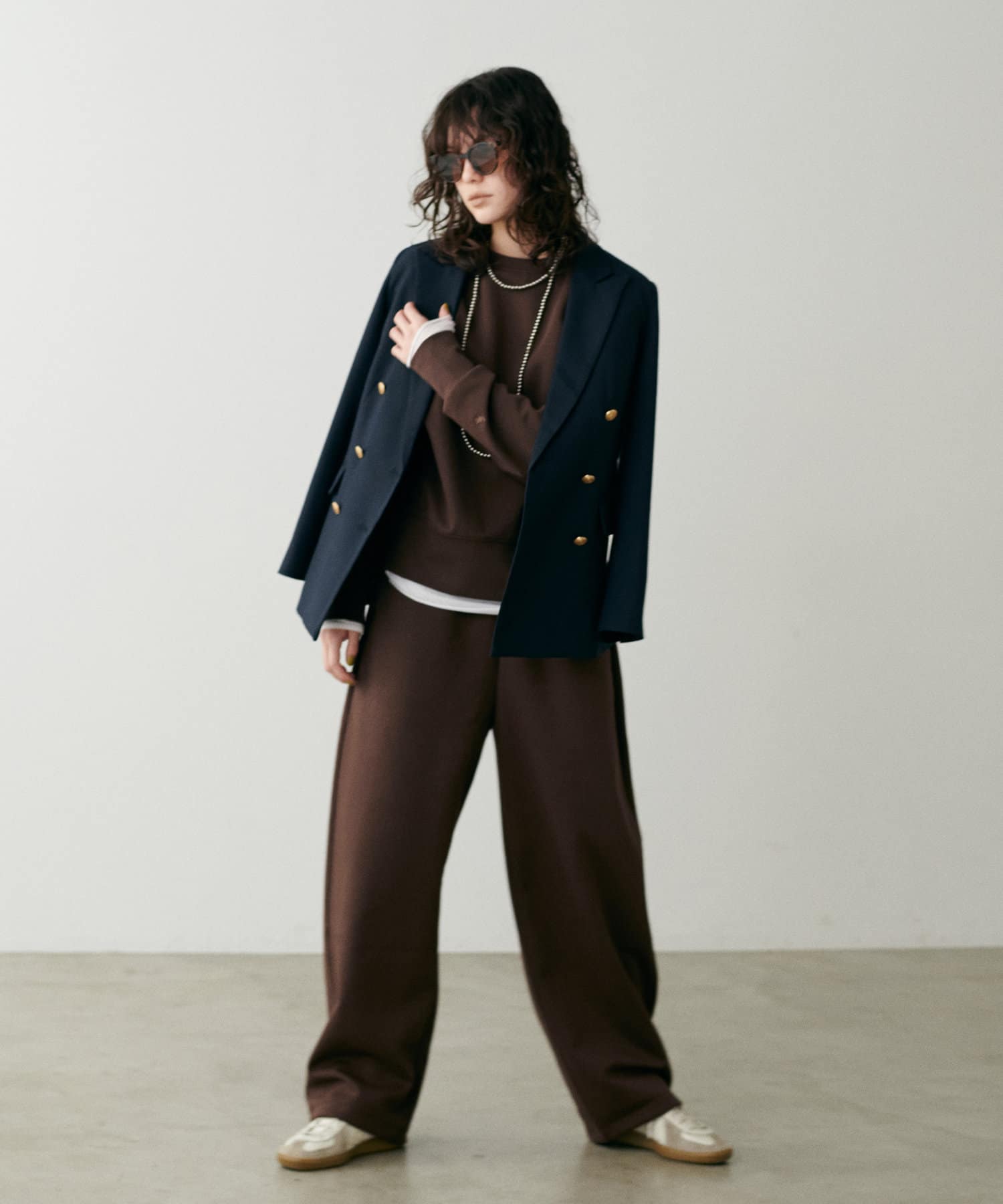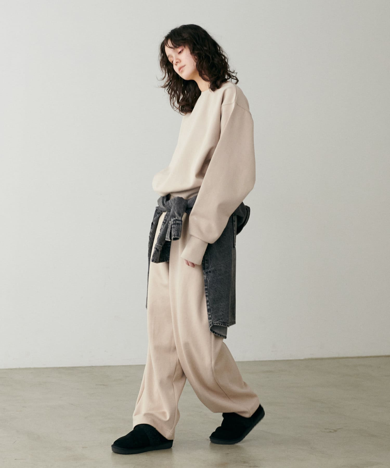 カジュアルながらも綺麗めなポンチ素材でリラクシーな着こなしが完成します。