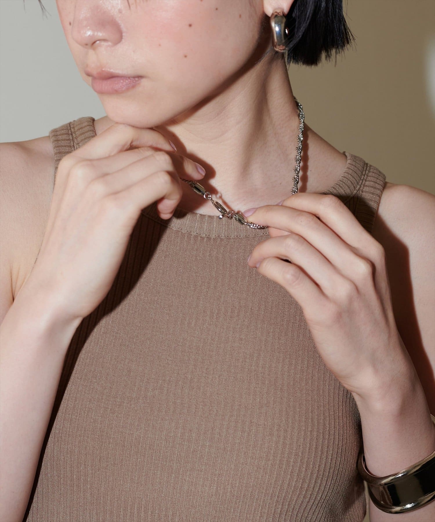 お手持ちのアクセサリーとも合わせやすく、デイリー使いにも◎。