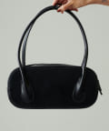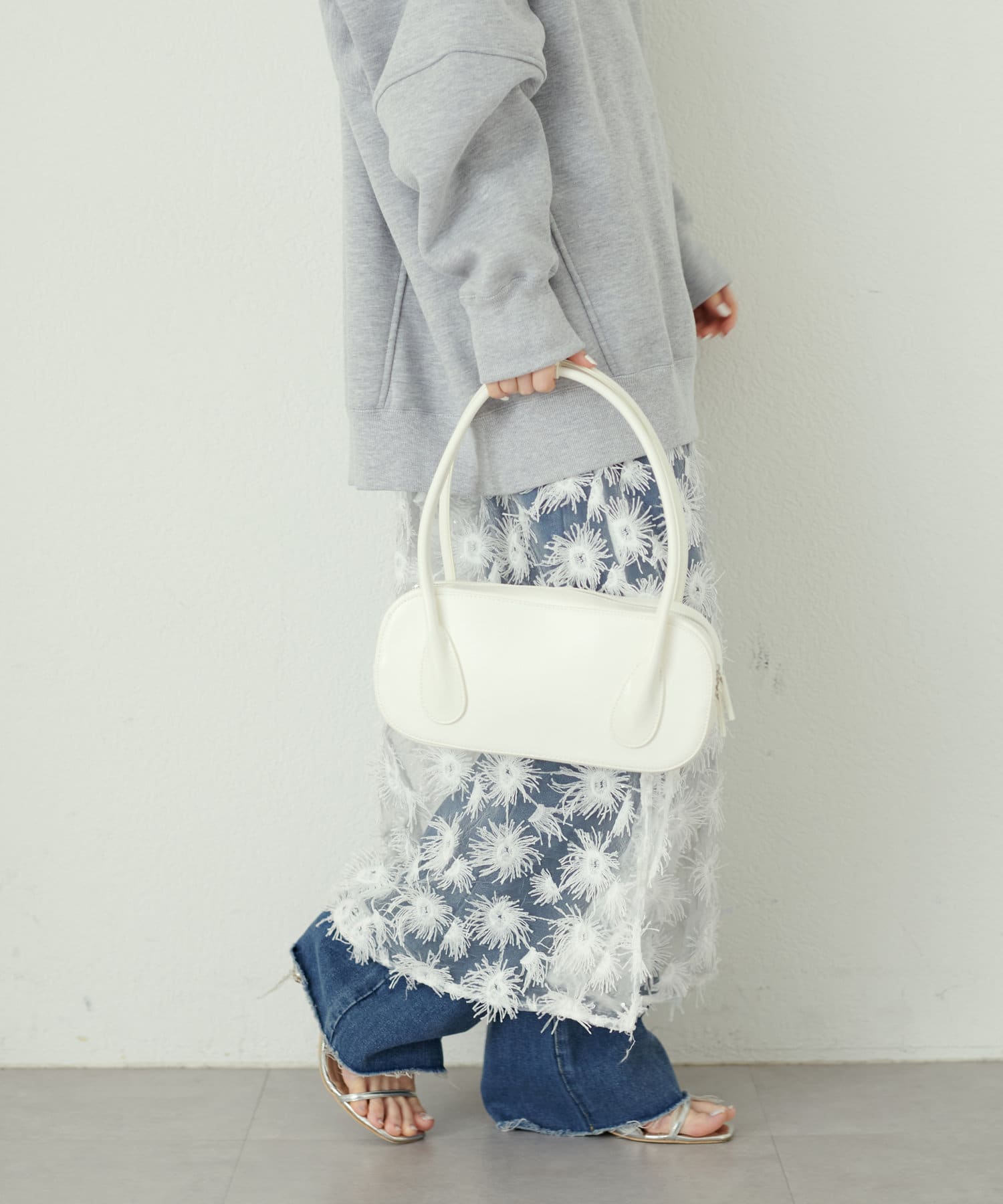 ころんとしたフォルムが可愛らしいハンドバッグ。